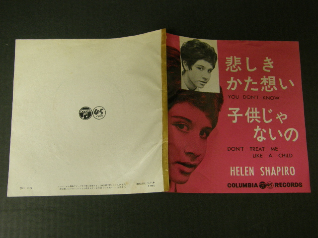 HELEN SHAPRIOヘレン・シャピロ/YOU DONT` KNOW 悲しきかた想い LL3039 製造国:日本盤 / Media:7inch外観:VG盤の状態:EX- 価格(税込):¥770 送料 7inch:定形外郵便 360円~LP:定形外郵便 660円~送料は、注文の最終画面で確認頂けます。 レコード検索 > FEMALE > HELEN SHAPRIO/YOU DONT` KNOW 外観 (VG)特記事項:ヨレ多少有り 書き込み有り テープ跡外観VGの共通説明:ダメージが見るからに多い。 盤の状態 (EX-)特記事項:スリキズ多少有り盤EX-の共通説明:盤面のスリキズが多少有り。音に出そうなものは殆ど無いように見える~さほど気にならないぐらいの軽いプチ数カ所程度。 その他:当時の値段:350円 Tweet それぞれの画像をクリックすると、大きい写真が見られます こちらの商品もお勧めです 990円 VENTURESベンチャーズ / IN CHRISTMASイン・クリスマス 1,210円 ELVIS PRESLEY / ON STAGE FEBRUARY 1970プレスリー・オン・ステージ 1970 880円 ELVISエルヴィス・プレスリー / THAT`S THE WAY IT ISこの胸のときめきを/映画「エルヴィス・オン・ステージ」主題歌集 2,420円 CLIFF RICHARDクリフ・リチャード / CLIFF IN JAPAN 1,210円 ELVIS PRESLEY / IN PERSON AT THE INTERNATIONAL HOTEL LAS VEGAS.NEVADA 1,210円 VENTURES / BEST OF THE VENTURES vol.2 RED VINYL赤盤 990円 VENTURESベンチャーズ / ON STAGE ENCOREオン・ステージ・アンコール 660円 PAUL ANKAポール・アンカ / BEST OF PAUL ANKAポール・アンカのすべて