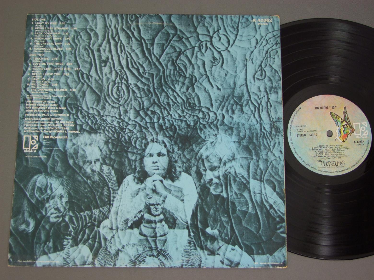 DOORS/13 ( 2ND LBL ) K42062 製造国:英国盤 / Media:LPMatrix:両面1外観:EX-盤の状態:EX 価格(税込):¥2,200(売約済) 送料 7inch:定形外郵便 360円~LP:定形外郵便 660円~送料は、注文の最終画面で確認頂けます。 > > DOORS/13 ( 2ND LBL ) 外観 (EX-)特記事項:ヘリスレ少々。レコードのリング跡も少々出ています。全体的にはまだまだきちんとした感じでヨレ感はあまり無いです。外観EX-の共通説明:ダメージ軽度~多少。 中古品としては普通の状態。シミ、ヨゴレ、スレなど軽く~多少。 盤の状態 (EX)特記事項:盤面あまりスリキズ無いきれいな状態。盤EXの共通説明:盤面のスリキズが薄いものが少し~軽度 音に出そうなものは無いように見える(軽微なソフトティック音は除く)。 その他:レーベルはオリジナル同様のワーナーのロゴなしのバタフライレーベルですが、ケーニー・エンタープライズ傘下になった関係でK番号に変わっています。 Tweet それぞれの画像をクリックすると、大きい写真が見られます こちらの商品もお勧めです 1,980円 DOORS / 13 ( 2ND LBL ) 770円 KENNY ROGERS & THE FRIST EDITION / TRANSITION 1,650円 FUGS / STAR PEACE 770円 ALABAMA / MOUTAIN MUSIC 1,650円 COWSILLS / PLUS THE LINCOLN PARK ZOO 1,650円 JEFFERSON AIRPLANE / BARK 1,100円 LOVIN` SPOONFUL / JUG BAND MUSIC 770円 POCO / UNDER THE GUN