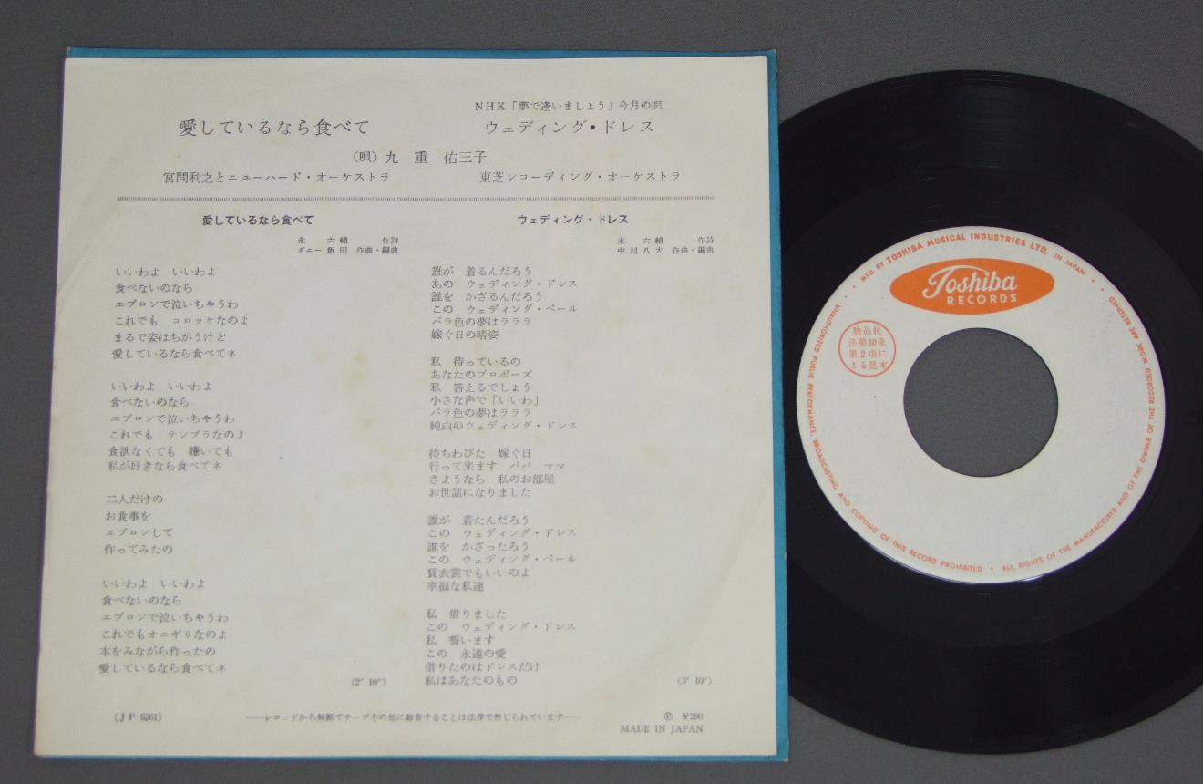 YUMIKO KOKONOE九重祐三子/ AISHITERUNARA TABETE愛しているなら食べて JP5261 製造国:日本盤 / Media:7inch外観:EX-盤の状態:EX 価格(税込):¥990 送料 7inch:定形外郵便 360円~LP:定形外郵便 660円~送料は、注文の最終画面で確認頂けます。 > > YUMIKO KOKONOE/ AISHITERUNARA TABETE 外観 (EX-)特記事項:軽いヨレと薄いシミ軽。外観EX-の共通説明:ダメージ軽度~多少。 中古品としては普通の状態。シミ、ヨゴレ、スレなど軽く~多少。 盤の状態 (EX)特記事項:あまりスリキズ無くきれいな感じ。盤EXの共通説明:盤面のスリキズが薄いものが少し~軽度 音に出そうなものは無いように見える(軽微なソフトティック音は除く)。 その他:白見本盤。 Tweet それぞれの画像をクリックすると、大きい写真が見られます こちらの商品もお勧めです 880円 上原敏 / ポリドール(SP原盤)シリーズ -第6集- 哀愁の抒情・マドロス歌謡 770円 MIDORI SASA笹みどり / BEST HITS下町育ち 笹みどりヒット集 1,210円 KEIICHIRO AKAGI赤木圭一郎 / EIEN-NO-TONY永遠のトニー 赤木圭一郎絶唱集 880円 TOSHIRO OKAMOTO岡本敦朗 / SHIROI HANA NO SAKUKORO白い花の咲く頃 660円 CHIEKO SATOH佐藤千夜子 / BEST COLLECTIONオリジナル原盤による懐しの歌声シリーズ4 東京行進曲 1,320円 藤山一郎 - 美空ひばり - 高峰三枝子 - 織井茂子 他 / ベスト20 特選-映画主題歌集 (2) 880円 上原敏 / 憶い出の任侠・時代歌謡-ポリドール SP原盤 シリーズ 880円 村田英雄-青山和子-安達明 他 / コロムビア歌のハイライト (第五集)