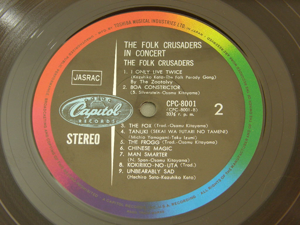 フォーク・クルセダーズ/ 奇想天外破廉恥集団 CPC8001 製造国:日本盤 / Media:LP外観:EX盤の状態:EX 価格(税込):¥2,096(売約済) 送料 7inch:定形外郵便 360円~LP:定形外郵便 660円~送料は、注文の最終画面で確認頂けます。 > > / 外観 (EX)特記事項:表ジャケの上の方で軽い日焼けとシミ少々。裏ジャケはシミ軽多少有り。ブックはあまり捲りヨレ無くきれいな感じですが、薄いシミ軽く多少有り。外観EXの共通説明:ダメージが限定的。中古品としては保存状態がよい方。シミ、ヨゴレ、スレ 少し~軽度。 盤の状態 (EX)特記事項:赤盤。あまりスリキズなくきれいな感じ。盤EXの共通説明:盤面のスリキズが薄いものが少し~軽度 音に出そうなものは無いように見える(軽微なソフトティック音は除く)。 Tweet それぞれの画像をクリックすると、大きい写真が見られます こちらの商品もお勧めです 1,210円 TAKUROU YOSHIDA吉田拓郎 / NINGEN-NANTE人間なんて 1,320円 NEKO猫 / NEKO猫 1,210円 KUMIKO YOKOI - CHUO CHOIR etc横井久美子・中央合唱団他 / HIROBAうたごえフォーク ひろば 770円 IRUKAイルカ / WAGA KOKORNO TOMOHE我が心の友へ 2,200円 KOHEI OIKAWA及川恒平 / 1st ALBUM忘れたお話 及川恒平1 2,200円 FLUID古井戸 / FLUID VOL.4四季の詩 1,320円 RYO KAGAWA加川良 / DEAR Q親愛なるQに捧ぐ 1,650円 MORIO AGATAあがた森魚 / M.AGATA FIRST ALBAM乙女の儚夢