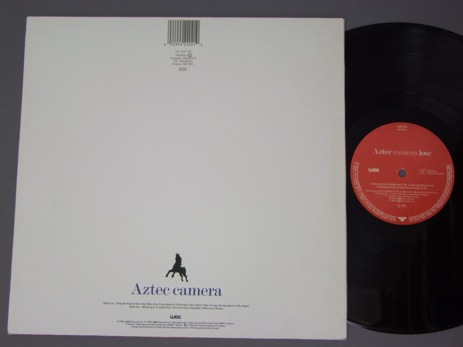 AZTEC CAMERA/LOVE WX128 製造国:欧州共通盤 / Media:LPMatrix:両面とも3を訂正して2外観:EX盤の状態:EX- 価格(税込):¥990(売約済) 送料 7inch:定形外郵便 360円~LP:定形外郵便 660円~送料は、注文の最終画面で確認頂けます。 > > AZTEC CAMERA/LOVE 外観 (EX)特記事項:よごれはほとんど無く日焼けも極々僅かのみ。真っ白に近くとってもきれいな色合い。ヨレシワヘリに軽くある感じ。良く見て少しスリキズ有る程度です。角スレ、ヘリスレも軽く地が出ている程度。美品の様相。オリジナルインナーも軽いヨレと小さい書き込みがあるぐらい。外観EXの共通説明:ダメージが限定的。中古品としては保存状態がよい方。シミ、ヨゴレ、スレ 少し~軽度。 盤の状態 (EX-)特記事項:極細のヘアライン風スリキズやや有りますが、いずれも触感の無い軽微なもの。盤EX-の共通説明:盤面のスリキズが多少有り。音に出そうなものは殆ど無いように見える~さほど気にならないぐらいの軽いプチ数カ所程度。 Tweet それぞれの画像をクリックすると、大きい写真が見られます こちらの商品もお勧めです 1,320円 UK 80s SMALL GROUPS / TIMEBOX 990円 AND ALL BECAUSE THE LADY LOVES / ANYTHING BUT A SOFT CENTRE 1,650円 LLOYD COLE AND THE COMMOTION / EASY PIECES 1,210円 PICKLES / MINDYARD 1,650円 SAD CAFE / FACADES BLUE VINYLFACADES 青盤 1,100円 COOLIES / COOLIES PRESENTS DOUG 550円 FIRE FALL / UNDERTOW 990円 BILLY & THE BEATERS / BILLY & THE BEATERS