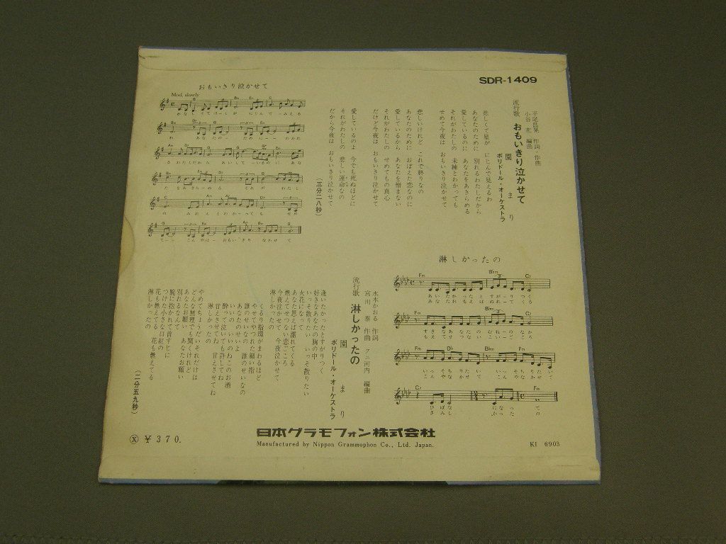 MARI SONO園まり/OMOIKKIRI NAKASETEおもいっきり泣かせて SDR1409 製造国:日本盤 / Media:7inch外観:EX盤の状態:EX 価格(税込):¥550 送料 7inch:定形外郵便 360円~LP:定形外郵便 660円~送料は、注文の最終画面で確認頂けます。 > > MARI SONO/OMOIKKIRI NAKASETE 外観 (EX)特記事項:軽いヨレ多少有り。外観EXの共通説明:ダメージが限定的。中古品としては保存状態がよい方。シミ、ヨゴレ、スレ 少し~軽度。 盤の状態 (EX)特記事項:薄いスリキズが少々。盤EXの共通説明:盤面のスリキズが薄いものが少し~軽度 音に出そうなものは無いように見える(軽微なソフトティック音は除く)。 Tweet それぞれの画像をクリックすると、大きい写真が見られます こちらの商品もお勧めです 770円 MIEKO TAKAMINE高峰三枝子 / SONG ALBUM高峰三枝子 歌のアルバム 550円 HISAO ITO伊藤久男 / BEST ALBUM懐しの歌声 伊藤久男と共に 880円 KEN TSUMURA津村謙 / KAYO ALBUM津村謙歌謡アルバム 660円 MISAO MATSUBARA松原操 / COLLECTION VOL2第ニ集-浮草の唄 990円 YOSHIO TABATA田端義夫 / SHIMA SODACHI島育ち 1,210円 KEIICHIRO AKAGI赤木圭一郎 / EIEN-NO-TONY永遠のトニー 赤木圭一郎絶唱集 770円 YUJIRO ISHIHARA石原裕次郎 / YUJIRO ISHIHARA ORIGINAL BEST石原裕次郎オリジナルベスト 660円 AKIRA MATSUDAIRA松平晃 / CIRCUS SONG懐かしの針音 松平晃 サーカスの唄