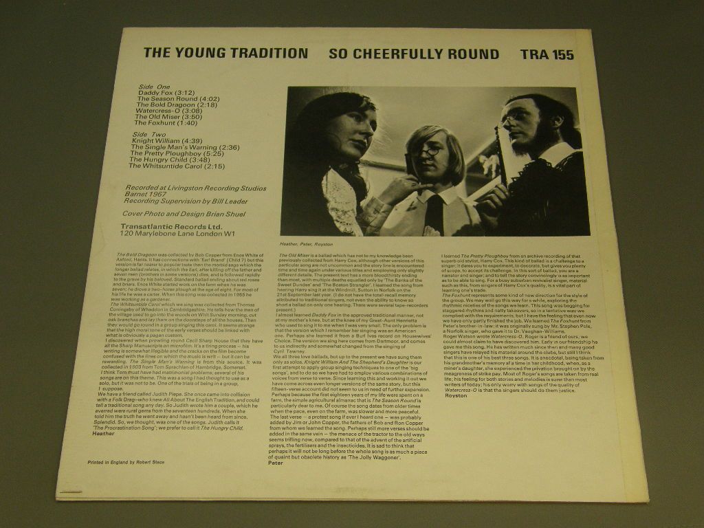 YOUNG TRADITION/SO CHEERFULLY ROUND TRA155 製造国:英国盤 / Media:LPMatrix:両面とも1外観:EX+盤の状態:EX- 価格(税込):¥2,724(売約済) 送料 7inch:定形外郵便 360円~LP:定形外郵便 660円~送料は、注文の最終画面で確認頂けます。 > > YOUNG TRADITION/SO CHEERFULLY ROUND 外観 (EX+)特記事項:ピカピカの状態。表ジャケスレもほぼ無く、シワも極僅かのみ。裏ジャケヘリに薄っすらのスレが有るぐらい。角スレも僅か程度で、文句なしの綺麗さ。外観EX+の共通説明:中古としては美品、一見してきれいでダメージが軽微。シミ、ヨゴレ、スレ有っても僅か~少し。 盤の状態 (EX-)特記事項:薄く少し長めのトレースミスっぽいスリキズが両面とも多少有る感じ。軽微なものばかりで音に出そうなものもありません。音が極薄い曲ばかりなので、ほんの軽いプチ感が有りますが、全体的なチリも少しだけしかありませんし、音もとってもクリア。きれいな状態です。盤EX-の共通説明:盤面のスリキズが多少有り。音に出そうなものは殆ど無いように見える~さほど気にならないぐらいの軽いプチ数カ所程度。 Tweet それぞれの画像をクリックすると、大きい写真が見られます こちらの商品もお勧めです 770円 CHRISTOF STAHLIN / GEHEIME HYMNEN 770円 CHRISTOF STAHLIN / LIEDER FUR ANDERE-TEXTE ZUR SCHALLPLATTE 990円 CHARLIE RICH / FULLY REALIZED 770円 FINBAR & EDDIE FUREY / FINBAR & EDDIE FUREY VOL2 990円 JIM MacLEOD AND HIS BAND / SOUND OF SCOTLAND 770円 GEGEN DEN RHYTHMUS DER ZEIT / FRAUNHOFER SAITENMUSIK 1,100円 CHRISTOF STAHLIN / MAG DENN KEINER DIE BUNDESREPUBLIK? 770円 WERNER LAMMERHIRT / DIE DRITTE