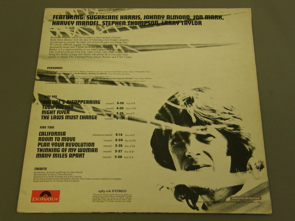 JOHN MAYALL/BEYOND THE TURNING POINT 2483 016 製造国:英国盤 / Media:LP外観:EX盤の状態:EX+ 価格(税込):¥2,200(売約済) 送料 7inch:定形外郵便 360円~LP:定形外郵便 660円~送料は、注文の最終画面で確認頂けます。 > > JOHN MAYALL/BEYOND THE TURNING POINT 外観 (EX)特記事項:ヘリスレ多少有り。ジャケ表面にも薄めのスレやよごれ少し有る感じ。外観EXの共通説明:ダメージが限定的。中古品としては保存状態がよい方。シミ、ヨゴレ、スレ 少し~軽度。 盤の状態 (EX+)特記事項:ほとんどスリキズ無くきれいな状態。盤EX+の共通説明:盤面の極薄いスリキズ、スレ少し程度 音に出そうなものは無いように見える(極軽微なソフトティック音は除く)。 その他:初回レーベル Tweet それぞれの画像をクリックすると、大きい写真が見られます こちらの商品もお勧めです 1,320円 HI TIDE HARRIS BLUES BAND / LIVE AT ASPEN GLOW 550円 ETTORE ZEPPEGNO / GOOD TIME FLAT BLUES STOMPS & OTHERS 550円 VARIOUS ARTISTS / LADIES GET THE BLUES 1,320円 B.B.KING / INCREDIBLE SOUL OF B.B.KING