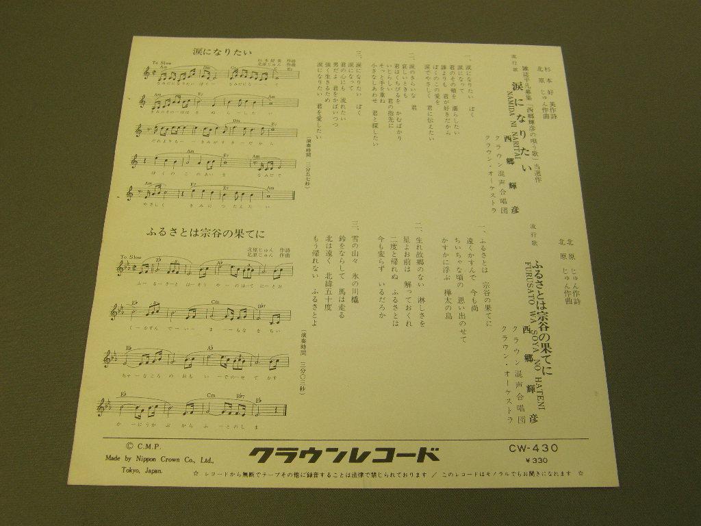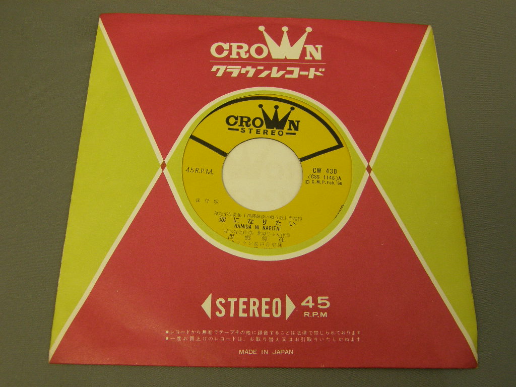 TERUHIKO SAIGO西郷輝彦/NAMIDA NI NARITAI涙になりたい CW430 製造国:日本盤 / Media:7inch外観:EX-盤の状態:EX 価格(税込):¥440 送料 7inch:定形外郵便 360円~LP:定形外郵便 660円~送料は、注文の最終画面で確認頂けます。 > > TERUHIKO SAIGO/NAMIDA NI NARITAI 外観 (EX-)特記事項:ヨレ少々。裏側でよごれ軽。外観EX-の共通説明:ダメージ軽度~多少。 中古品としては普通の状態。シミ、ヨゴレ、スレなど軽く~多少。 盤の状態 (EX)特記事項:薄いスリキズが少々。盤EXの共通説明:盤面のスリキズが薄いものが少し~軽度 音に出そうなものは無いように見える(軽微なソフトティック音は除く)。 Tweet それぞれの画像をクリックすると、大きい写真が見られます こちらの商品もお勧めです 660円 KOJO TSURUTA鶴田浩二 / RED AND BLACK BLUES赤と黒のブルース 660円 AKIRA MATSUDAIRA松平晃 / CIRCUS SONG懐かしの針音 松平晃 サーカスの唄 770円 MIDORI SASA笹みどり / BEST HITS下町育ち 笹みどりヒット集 1,210円 KEIICHIRO AKAGI赤木圭一郎 / EIEN-NO-TONY永遠のトニー 赤木圭一郎絶唱集 1,210円 高峰秀子-橋幸夫 他 / 続 日本流行歌史 1,210円 HACHIRO KASUGA春日八郎 / HACHIRO KASUGA HIT ALBUM春日八郎 -魅力のすべて- 770円 MIEKO TAKAMINE高峰三枝子 / SONG ALBUM高峰三枝子 歌のアルバム 660円 MISAO MATSUBARA松原操 / COLLECTION VOL2第ニ集-浮草の唄