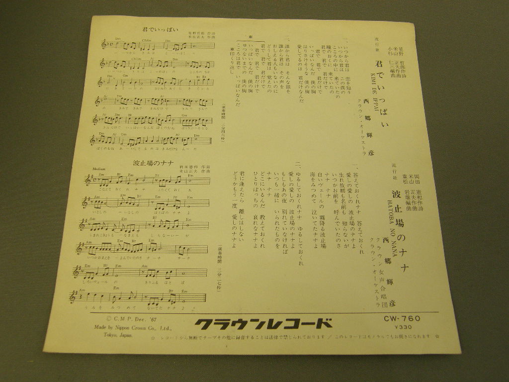 TERUHIKO SAIGO西郷輝彦/KIMI DE IPPAI君でいっぱい CW760 製造国:日本盤 / Media:7inch外観:EX盤の状態:EX 価格(税込):¥440 送料 7inch:定形外郵便 360円~LP:定形外郵便 660円~送料は、注文の最終画面で確認頂けます。 レコード検索 > 1980s–90s > TERUHIKO SAIGO/KIMI DE IPPAI 外観 (EX)特記事項:ヨレ少々。外観EXの共通説明:ダメージが限定的。中古品としては保存状態がよい方。シミ、ヨゴレ、スレ 少し~軽度。 盤の状態 (EX)特記事項:薄いスリキズが少々。盤EXの共通説明:盤面のスリキズが薄いものが少し~軽度 音に出そうなものは無いように見える(軽微なソフトティック音は除く)。 Tweet それぞれの画像をクリックすると、大きい写真が見られます こちらの商品もお勧めです 880円 YUKIO HASHI橋幸夫 / FROM ITAKOGASA TO MUHYO黄金の声/潮来笠から霧氷まで 1,210円 KEIICHIRO AKAGI赤木圭一郎 / EIEN-NO-TONY永遠のトニー 赤木圭一郎絶唱集 1,320円 藤山一郎 - 美空ひばり - 高峰三枝子 - 織井茂子 他 / ベスト20 特選-映画主題歌集 (2) 990円 YOSHIO TABATA田端義夫 / BEST ALBUM歌道ひと筋三十年 田端義夫の傑作全集 心の唄 550円 HISAO ITO伊藤久男 / BEST ALBUM懐しの歌声 伊藤久男と共に 660円 AKIRA MATSUDAIRA松平晃 / CIRCUS SONG懐かしの針音 松平晃 サーカスの唄 770円 MIDORI SASA笹みどり / BEST HITS下町育ち 笹みどりヒット集 1,210円 高峰秀子-橋幸夫 他 / 続 日本流行歌史