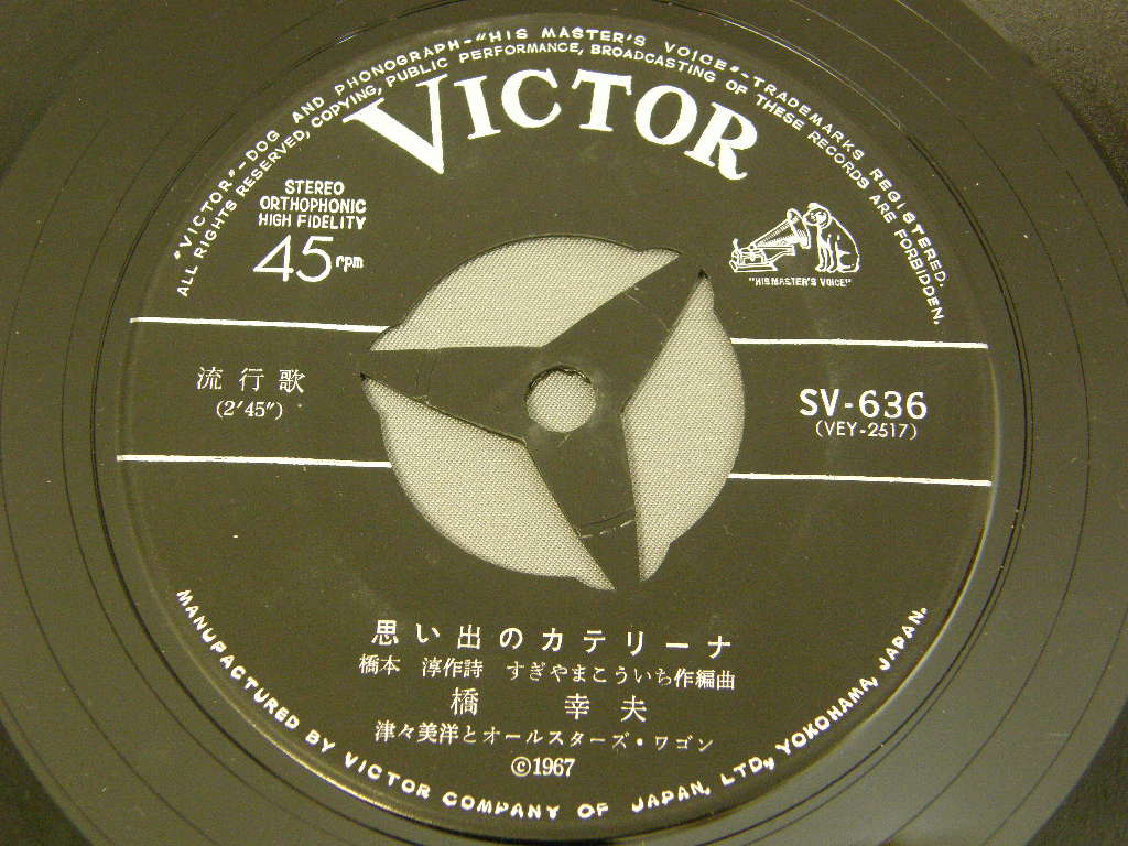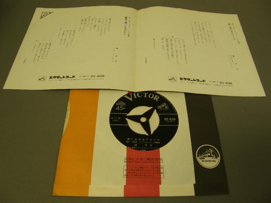 YUKIO HASHI橋幸夫/OMOIDE NO CATERINA思い出のカテリーナ SV636 製造国:日本盤 / Media:7inch外観:EX盤の状態:EX 価格(税込):¥440 送料 7inch:定形外郵便 360円~LP:定形外郵便 660円~送料は、注文の最終画面で確認頂けます。 > > YUKIO HASHI/OMOIDE NO CATERINA 外観 (EX)特記事項:ヨレ少々。外観EXの共通説明:ダメージが限定的。中古品としては保存状態がよい方。シミ、ヨゴレ、スレ 少し~軽度。 盤の状態 (EX)特記事項:薄いスリキズが少々。盤EXの共通説明:盤面のスリキズが薄いものが少し~軽度 音に出そうなものは無いように見える(軽微なソフトティック音は除く)。 Tweet それぞれの画像をクリックすると、大きい写真が見られます こちらの商品もお勧めです 880円 KEN TSUMURA津村謙 / KAYO ALBUM津村謙歌謡アルバム 770円 YUJIRO ISHIHARA石原裕次郎 / YUJIRO ISHIHARA ORIGINAL BEST石原裕次郎オリジナルベスト 880円 上原敏 / ポリドール(SP原盤)シリーズ -第6集- 哀愁の抒情・マドロス歌謡 770円 MIDORI SASA笹みどり / BEST HITS下町育ち 笹みどりヒット集 880円 YUKIO HASHI橋幸夫 / FROM ITAKOGASA TO MUHYO黄金の声/潮来笠から霧氷まで 550円 HISAO ITO伊藤久男 / BEST ALBUM懐しの歌声 伊藤久男と共に 1,210円 高峰秀子-橋幸夫 他 / 続 日本流行歌史 660円 AKIRA MATSUDAIRA松平晃 / CIRCUS SONG懐かしの針音 松平晃 サーカスの唄