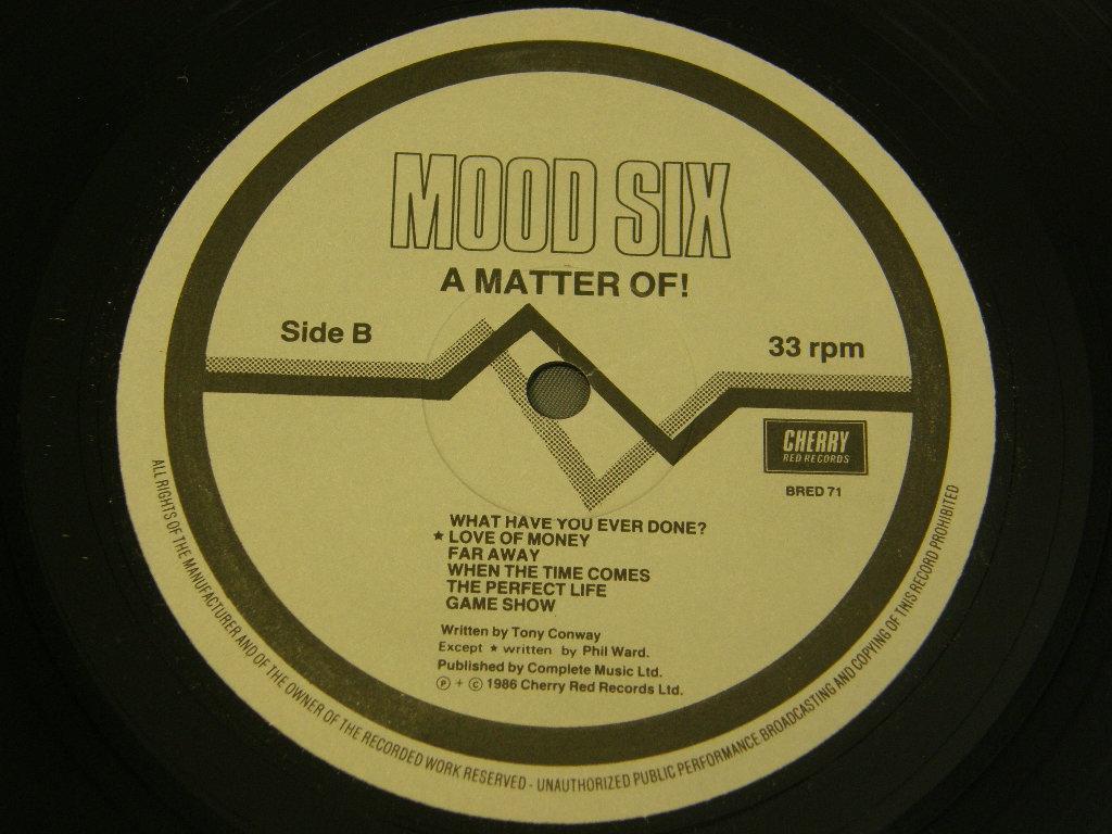 MOOD SIX/MATTER OF ! 製造国:英国盤 / Media:LPMatrix:A1 / B1 手書き風外観:EX盤の状態:EX 価格(税込):¥2,860(売約済) 送料 7inch:定形外郵便 360円~LP:定形外郵便 660円~送料は、注文の最終画面で確認頂けます。 > > MOOD SIX/MATTER OF ! 外観 (EX)特記事項:表面スレ僅か。ヨレも角近くに少しあるぐらいです。表ジャケ右上に僅かなシール剥し跡、裏ジャケにシミの線ぐらい。角スレ、ヘリスレも少しだけで美品クラスの綺麗さ。外観EXの共通説明:ダメージが限定的。中古品としては保存状態がよい方。シミ、ヨゴレ、スレ 少し~軽度。 盤の状態 (EX)特記事項:盤に極薄い擦れが有るのみ。一見して美盤です。少し聴いてみましたが、チリプチも僅かでした。盤EXの共通説明:盤面のスリキズが薄いものが少し~軽度 音に出そうなものは無いように見える(軽微なソフトティック音は除く)。 その他:マトリックスの感じから云って英国盤と思います。 Tweet それぞれの画像をクリックすると、大きい写真が見られます こちらの商品もお勧めです 1,650円 NINE NINE NINE999 / BIGGEST PRIZE IN SPORT 1,320円 RAPED EPLIEPTICS etc / COM STAINS OVER MY RECORD COLLECTION 2,750円 FRENZYフレンジー / HALL OF MIRRORSホール・オブ・ミラーズ 770円 SIXTEEN TONS / HEADSHOT 1,650円 VARIOUS UK PUNK GROUPS / KIDS ARE UNITED 770円 DAVY JONES LOCKER / GREEN ALBUM 770円 VARIOUS ARTISTS / HARDCORE BREAKOUT U.S.A 770円 NAME / DANGEROUS TIMES