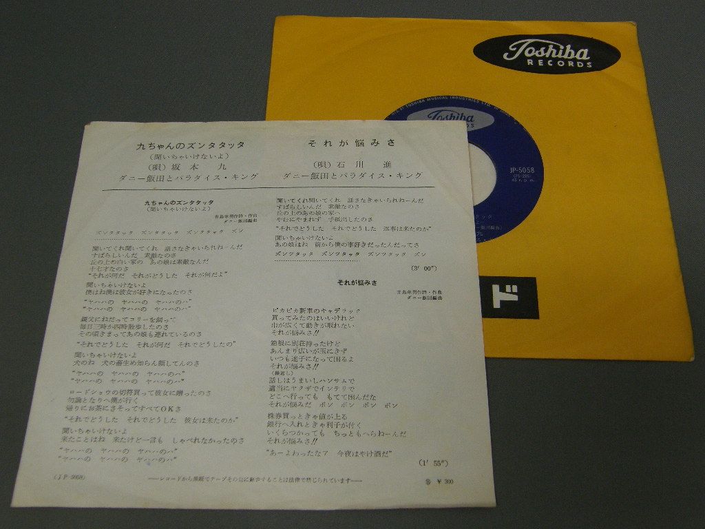 坂本九とパラキン/ 九ちゃんのズンタタッタ JP5058 製造国:日本盤 / Media:7inch外観:VG+盤の状態:EX- 価格(税込):¥990(売約済) 送料 7inch:定形外郵便 360円~LP:定形外郵便 660円~送料は、注文の最終画面で確認頂けます。 > > / 外観 (VG+)特記事項:ヨレ多少有り。レコードリングスレも少し。外観VG+の共通説明:ダメージやや有り。シミ、ヨゴレ、スレなど多少~やや多め。 盤の状態 (EX-)特記事項:薄いスレやスリキズ多少有りますが、軽微な感じ。盤EX-の共通説明:盤面のスリキズが多少有り。音に出そうなものは殆ど無いように見える~さほど気にならないぐらいの軽いプチ数カ所程度。 Tweet それぞれの画像をクリックすると、大きい写真が見られます こちらの商品もお勧めです 770円 HIBARI MISORA美空ひばり / 1932-35芸能生活30周年記念 歌謡曲50年 第2集 ( 昭和7- 10年) 1,210円 高峰秀子-橋幸夫 他 / 続 日本流行歌史 1,210円 HACHIRO KASUGA春日八郎 / HACHIRO KASUGA HIT ALBUM春日八郎 -魅力のすべて- 770円 MIEKO TAKAMINE高峰三枝子 / SONG ALBUM高峰三枝子 歌のアルバム 770円 MIDORI SASA笹みどり / BEST HITS下町育ち 笹みどりヒット集 880円 KEN TSUMURA津村謙 / KAYO ALBUM津村謙歌謡アルバム 1,320円 藤山一郎 - 美空ひばり - 高峰三枝子 - 織井茂子 他 / ベスト20 特選-映画主題歌集 (2) 1,210円 KEIICHIRO AKAGI赤木圭一郎 / EIEN-NO-TONY永遠のトニー 赤木圭一郎絶唱集