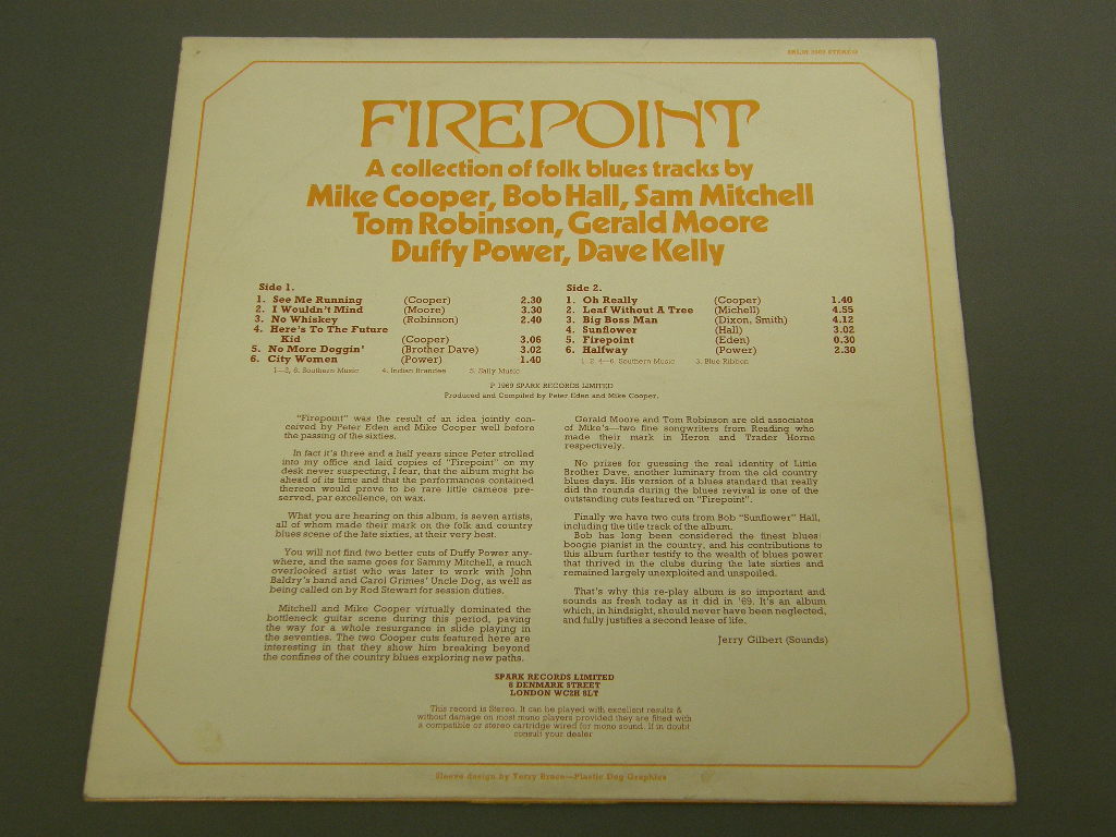 VARIOOUS BLUES ARTISTS/FIREPOINT SRLM2003 製造国:英国盤 / Media:LPMatrix:A-1△G / B-1△G外観:EX-盤の状態:EX 価格(税込):¥2,200(売約済) 送料 7inch:定形外郵便 360円~LP:定形外郵便 660円~送料は、注文の最終画面で確認頂けます。 レコード検索 > 全てのジャンル > VARIOOUS BLUES ARTISTS/FIREPOINT 外観 (EX-)特記事項:上ヘリと背付近で日焼け少し有ります。ジャケ表面は、下の方ではちょい強めのリングスレもありますが、全体的には薄いスレやよごれ軽多少有り。右上隅にスレ剥れ少々。裏ジャケはやはりレコードリングスレ等スレよごれ軽等。底抜け有。外観EX-の共通説明:ダメージ軽度~多少。 中古品としては普通の状態。シミ、ヨゴレ、スレなど軽く~多少。 盤の状態 (EX)特記事項:薄い細かいスリキズ少し有るぐらい。A4に薄いスリキズの集まりが有りますが、それを含めて、音に出るようなものは無さそうです。曲間などを中心に聴いてみましたが、チリプチも少しだけしかない様子。盤EXの共通説明:盤面のスリキズが薄いものが少し~軽度 音に出そうなものは無いように見える(軽微なソフトティック音は除く)。 その他:MIKE COOPER / BOB HALL / SAM MITCHELL / TOM ROBINSON / CERALD MOORE/DUFFY POWER / DAVE KELLY CERALD MOOREとTOM ROBINSONはHERONとTRADER HORNEのSONGWRITER。 Tweet それぞれの画像をクリックすると、大きい写真が見られます こちらの商品もお勧めです 1,320円 HI TIDE HARRIS BLUES BAND / LIVE AT ASPEN GLOW 550円 ETTORE ZEPPEGNO / GOOD TIME FLAT BLUES STOMPS & OTHERS 550円 VARIOUS ARTISTS / LADIES GET THE BLUES 1,320円 B.B.KING / INCREDIBLE SOUL OF B.B.KING