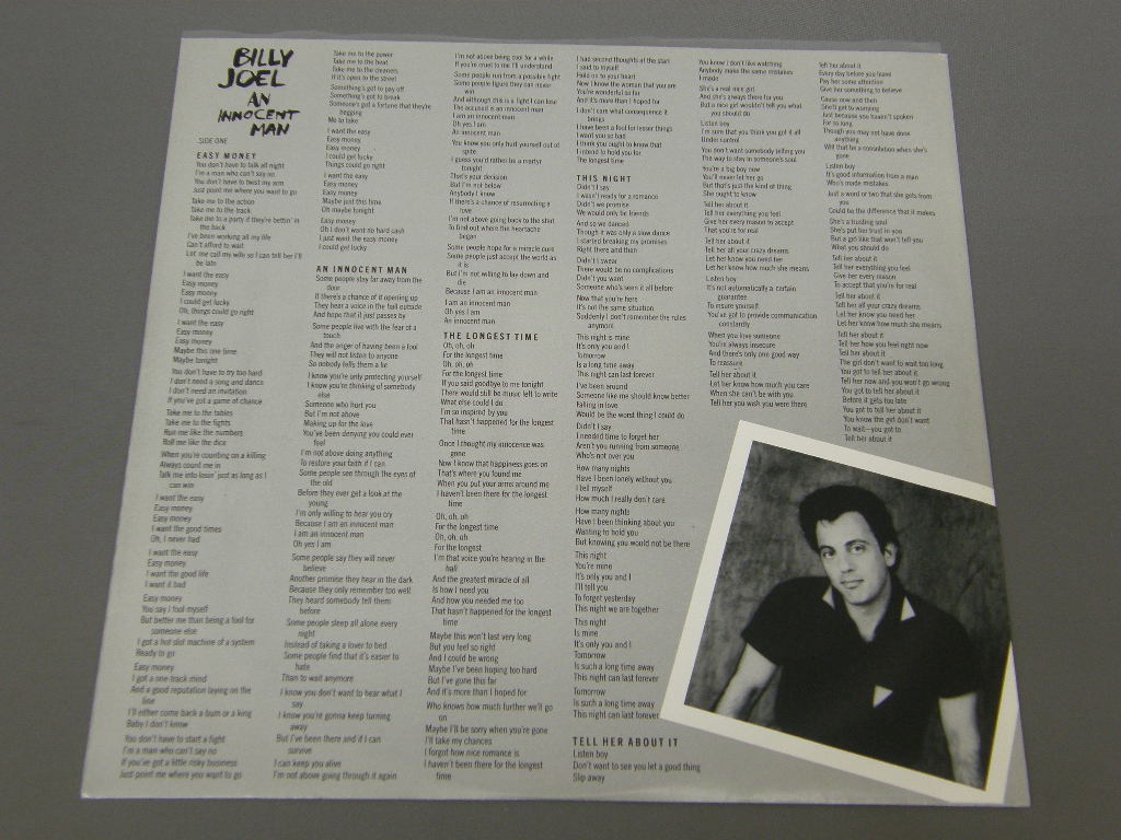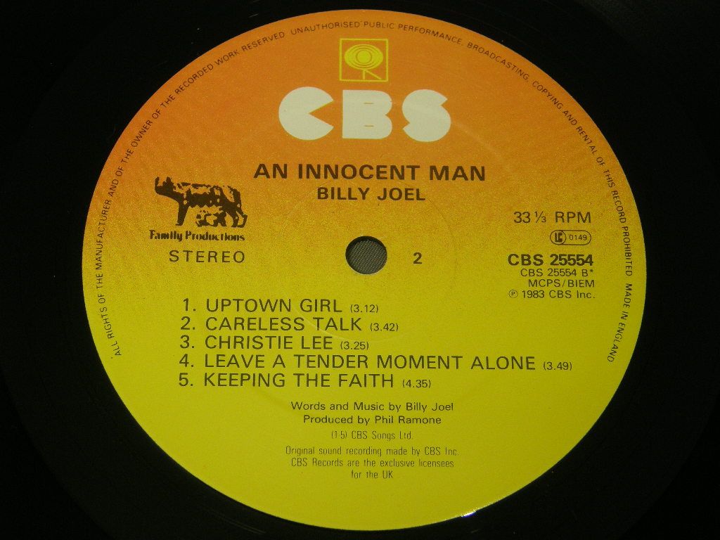 BILLY JOEL/INNOCENT MAN CBS25554 製造国:英国盤 / Media:LPMatrix:2A-1 刻印 / B3 手書き風外観:EX盤の状態:EX 価格(税込):¥1,047(売約済) 送料 7inch:定形外郵便 360円~LP:定形外郵便 660円~送料は、注文の最終画面で確認頂けます。 レコード検索 > 全てのジャンル > BILLY JOEL/INNOCENT MAN 外観 (EX)特記事項:全体的にスレやヨレシワのあまり無いきれいな感じのジャケ。スリキズ少々。全体的にヨレ感はほとんど無し。オリジナルインナーはヨレも少なめで抜けも無し。美品。外観EXの共通説明:ダメージが限定的。中古品としては保存状態がよい方。シミ、ヨゴレ、スレ 少し~軽度。 盤の状態 (EX)特記事項:薄いスリキズ少しだけ。音に出そうなモノも無く、一見して綺麗な状態です。曲間などを中心に聴いてみましたが、チリプチも少しだけでした。盤EXの共通説明:盤面のスリキズが薄いものが少し~軽度 音に出そうなものは無いように見える(軽微なソフトティック音は除く)。 Tweet それぞれの画像をクリックすると、大きい写真が見られます こちらの商品もお勧めです 770円 GEORG DANZERゲオルク・ダンツァー / UNTER DIE HAUT 770円 GILBERT BECAUD / LE DISQUE D`OR DE GILBERT BECAUD 1,100円 VANGELS / TO THE UNKNOWN MAN 1,100円 FRANK SINATRAフランク・シナトラ / CONCERTS 5,500円 NEIL YOUNG / AT THE LOS ANGELES MUSIC CENTER 770円 CHRIS MONTAN / ANY MINUTE NOW 990円 RICKY SHAYNE / MAMY BLUE 440円 JOHN DAVIDSON / TIME OF MY LIFE !