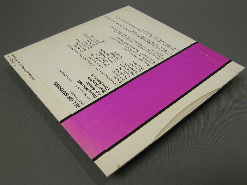 STEVE MARRIOTT etc/ALL OR NOTHING 7THE1 製造国:英国盤 / Media:7inchMatrix:A-1U-1-1 / B-1U-1-1外観:VG+盤の状態:EX 価格(税込):¥3,850 送料 7inch:定形外郵便 360円~LP:定形外郵便 660円~送料は、注文の最終画面で確認頂けます。 > > STEVE MARRIOTT etc/ALL OR NOTHING 外観 (VG+)特記事項:ヘリスレ多少有り。表でレコードリングスレ多少目立つ感じ。レコード取り出し口淵でヨレ軽多少。外観VG+の共通説明:ダメージやや有り。シミ、ヨゴレ、スレなど多少~やや多め。 盤の状態 (EX)特記事項:極薄いスリキズと、僅かなコスレが有るぐらい。一見して綺麗です。少し聴いてみましたが、音の無い所などでもチリプチ少しだけのようです。音もとってもクリアー。美盤でしょう。盤EXの共通説明:盤面のスリキズが薄いものが少し~軽度 音に出そうなものは無いように見える(軽微なソフトティック音は除く)。 その他:STEVE MARRIOT、PP ARNOLD、CHRIS FARLOWE参加。バックは、CHORDSやLAMBRETTAS等ネオ・モッズのメンバーやSMALL FACESからも。 Tweet それぞれの画像をクリックすると、大きい写真が見られます こちらの商品もお勧めです 5,500円 GEORGE FAME / HALL OF FAME 9,900円 FOUR PENNIES / 2 SIDE OF 4 PENNIES 16,500円 TEE-SET / MA BELLE AMIE ( 1st ALBUM ) 10,450円 WAYNE FONTANA AND THE MINDBENDERS / 1st ALBUM 3,080円 JOHN`S CHILDREN / JAGGED TIME LAPSE ( RARE AND UNRELEASE ) 4,950円 MINDBENDERS / MINDBENDERS 16,500円 SPENCER DAVIS GROUP / TRAFFIC / HERE WE GO ROUND THE MULBERRY BUSH 11,000円 CLIFF BENNETT AND HIS BAND / CLIFF BENETT BRANCHES OUT