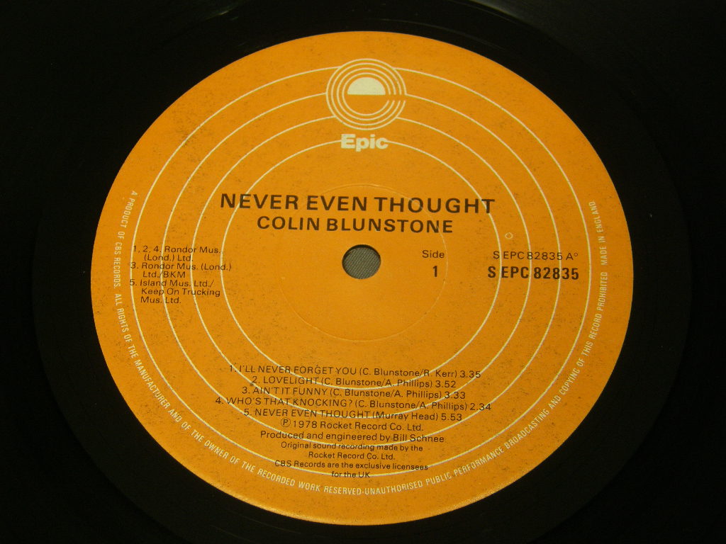 COLIN BLUNSTONE/NEVER EVEN THOUGHT EPC82835 製造国:英国盤 / Media:LPMatrix:A2 / B2外観:EX-盤の状態:EX 価格(税込):¥1,430(売約済) 送料 7inch:定形外郵便 360円~LP:定形外郵便 660円~送料は、注文の最終画面で確認頂けます。 > > COLIN BLUNSTONE/NEVER EVEN THOUGHT 外観 (EX-)特記事項:背スレや底スレやや多め。ジャケ表面は、レコード取り出し口下で折れ跡小、レコードリングスレ少し。外観EX-の共通説明:ダメージ軽度~多少。 中古品としては普通の状態。シミ、ヨゴレ、スレなど軽く~多少。 盤の状態 (EX)特記事項:薄いスリキズ少しと、最初の送り溝辺りに軽いスレが有るぐらいです。曲間などを中心に聴いてみましたが、チリプチも少しだけのようでした。盤EXの共通説明:盤面のスリキズが薄いものが少し~軽度 音に出そうなものは無いように見える(軽微なソフトティック音は除く)。 Tweet それぞれの画像をクリックすると、大きい写真が見られます こちらの商品もお勧めです 1,980円 STING / WITHOUT PROKOFIEV ( LIVE IN MINNESOTA USA 1985 ) UNOFFICAL RELEASE 5,500円 NEIL YOUNG / AT THE LOS ANGELES MUSIC CENTER 1,320円 ROBERT PLANT / SHAKEN`N`STIRRED 770円 WILLIE NELSON / DUETS WITH LEON RUSSELL NEIL YOUNG etc 990円 GORDON LIGHTFOOTゴードン・ライトフッド / WAY I FEEL 990円 PAUL YOUG / BETWEEN TWO FIRES 1,100円 RUSS BALLARD / FIRE STILL BURNS 1,980円 ANDREW CRONSHAW / GREAT DARK WATER