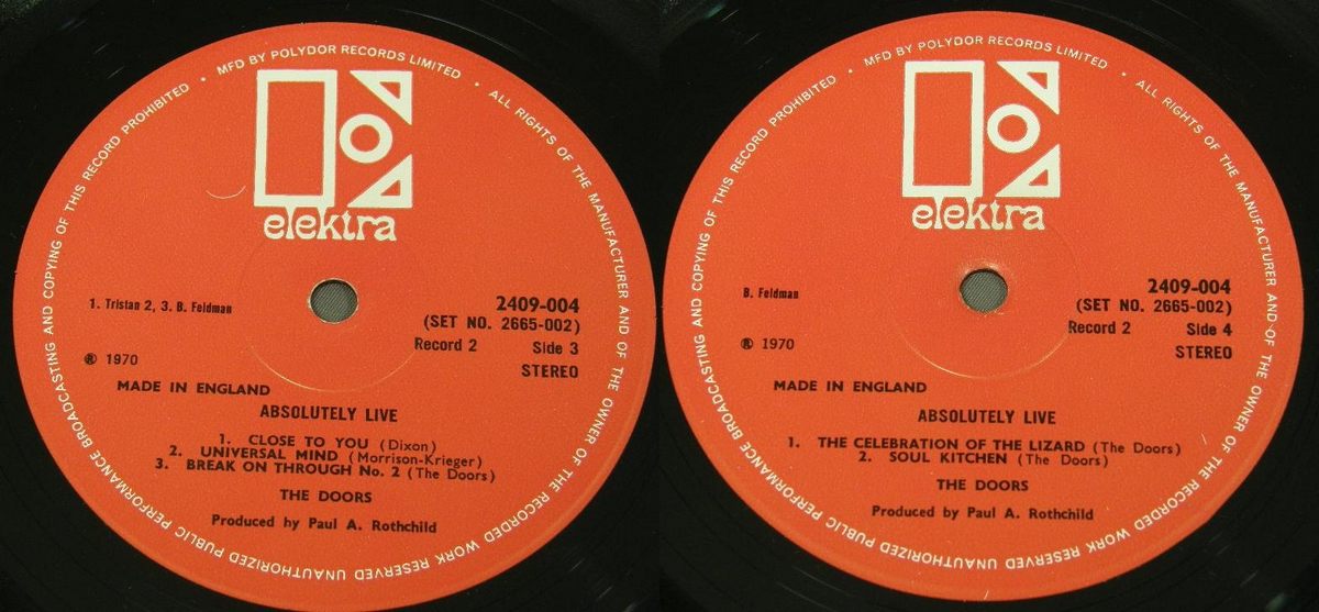 DOORS/ABSOLUTELY LIVE 2409 003/4 製造国:英国盤 / Media:LPMatrix:A-1-11/ B-1-11 / C-1-11/D面は枝番無い様子外観:VG盤の状態:EX- 価格(税込):¥2,096(売約済) 送料 7inch:定形外郵便 360円~LP:定形外郵便 660円~送料は、注文の最終画面で確認頂けます。 > > DOORS/ABSOLUTELY LIVE 外観 (VG)特記事項:背スレやヘリスレ大。ジャケ表面もレコードリングスレが割りと派手な感じ。レコード取り出し口側でヨレもやや有り。見開きはスレやスレよごれ軽多少有り。外観VGの共通説明:ダメージが見るからに多い。 盤の状態 (EX-)特記事項:薄いスリキズや、盤のスレっぽさ多少有りますが、軽微なものが殆どの様子。A面の最初の方に、溝に沿ってすれたような箇所が有り、2回ほどスーとなっていましたが針飛びは無く、あまり気にならない程度のものでした。 曲間などを中心に聴いてみましたが、音自体はとてもクリアーに鳴っている様子。静かな所もあまり無く、曲中の音の薄い様な所で軽いチリプチがあるぐらいのようです。音自体もクリアーに再生されていました。盤EX-の共通説明:盤面のスリキズが多少有り。音に出そうなものは殆ど無いように見える~さほど気にならないぐらいの軽いプチ数カ所程度。 Tweet それぞれの画像をクリックすると、大きい写真が見られます こちらの商品もお勧めです 1,650円 FUGS / STAR PEACE 770円 POCO / UNDER THE GUN 2,200円 CANDYMAN / BRING YOU CANDYPOWER 1,210円 STYX / KILROY WAS HERE 1,320円 GUESS WHO / ROCKIN` 880円 SAM THE SHAM & PHARAOHS / BESTOF SAM THE SHAM 9,900円 MOTHERS OF INVENTION / WEASELS RIPPED MY FLESH 1,100円 LOVIN` SPOONFUL / JUG BAND MUSIC
