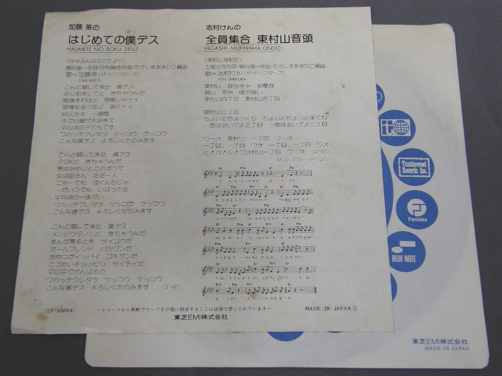志村けん/東村山音頭 TP10084 製造国:日本盤 / Media:7inch外観:VG+盤の状態:EX- 価格(税込):¥440(売約済) 送料 7inch:定形外郵便 360円~LP:定形外郵便 660円~送料は、注文の最終画面で確認頂けます。 > > / 外観 (VG+)特記事項:薄いスリキズが多少有りますがいずれもあまり触感の無い軽微な感じです。外観VG+の共通説明:ダメージやや有り。シミ、ヨゴレ、スレなど多少~やや多め。 盤の状態 (EX-)特記事項:薄いスリキズ、スレ多少有りますが、軽微なものが中心の様子。チリは軽度、プチは殆ど無いか1〜2箇所の軽プチぐらいでしょう。盤EX-の共通説明:盤面のスリキズが多少有り。音に出そうなものは殆ど無いように見える~さほど気にならないぐらいの軽いプチ数カ所程度。 その他:志村けんはB面。加藤茶がA面。初期タイプと思います。 Tweet それぞれの画像をクリックすると、大きい写真が見られます こちらの商品もお勧めです 880円 SQUAREスクエア / ROCKOONロックーン 1,320円 EIKO SHURI朱里エイコ / ON STAGE 2LP BOXオン・ステージ 2枚組 2,750円 STAGE 101ステージ101 / AKAI YANE NO IE赤い屋根の家 880円 KAZUHIKO KATOH加藤和彦 / L`OPERA FRAGILE 770円 MIYUKI NAKAJIMA中島みゆき / OAKERINASAIおかえりなさい 550円 SOUTHERN ALL STARS.サザンオールスターズ / KAMAKURA 770円 HIRO TSUNODA & JAP`S GAP`Sつのだ・ひろ&ジャップス・ギャップス / 1st ALBUMジャップス・ギャップス・テーマ 1,320円 OKAWARI SISTERSおかわりシスターズ / L.A.S.Tラ・ス・ト カレンダー付