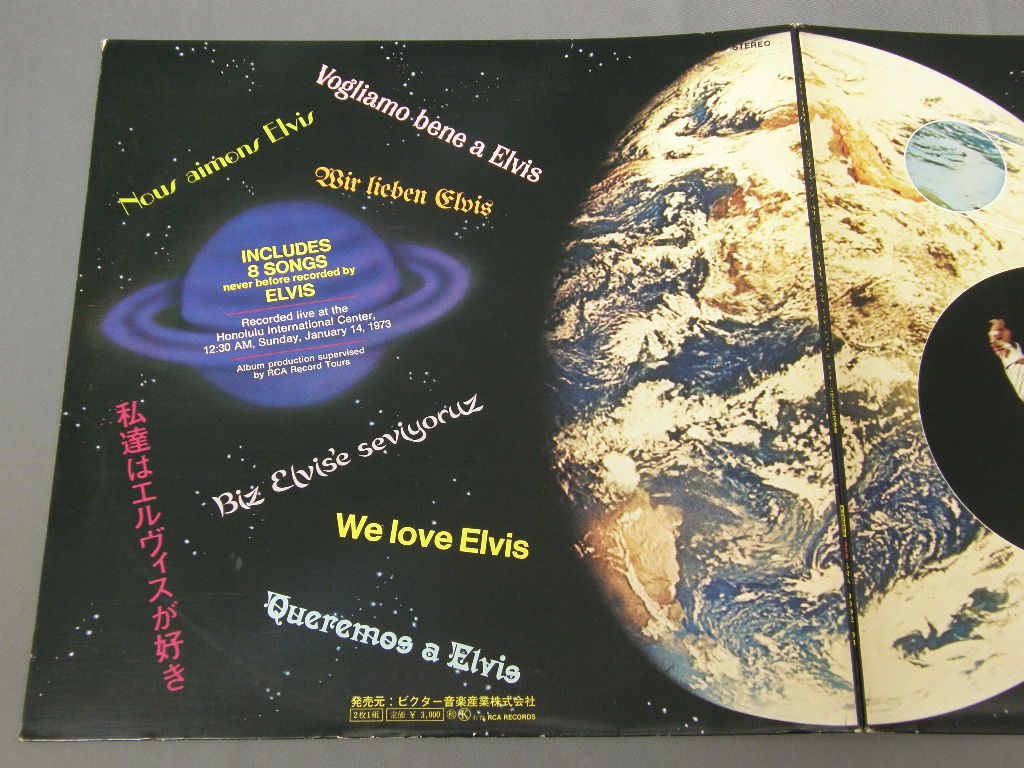 ELVIS PRESLEY/ALOHA FROM HAWAII 2枚組 SRA9392/3 製造国:日本盤 / Media:LP外観:EX盤の状態:EX 価格(税込):¥1,650(売約済) 送料 7inch:定形外郵便 360円~LP:定形外郵便 660円~送料は、注文の最終画面で確認頂けます。 レコード検索 > 全てのジャンル > ELVIS PRESLEY/ALOHA FROM HAWAII 外観 (EX)特記事項:ヘリスレ多少有り。レコードリングスレが少し、スリキズ少し。全体的にはあまりスレやスリキズは多くない印象。ポスター兼歌詞カードは歌詞側にシミやヨレが少し。ポスター側は良い感じ。外観EXの共通説明:ダメージが限定的。中古品としては保存状態がよい方。シミ、ヨゴレ、スレ 少し~軽度。 盤の状態 (EX)特記事項:薄くすったようなスレキズ、軽微なスリキズ等少し有るぐらい。音に出そうなものも無く、一見して綺麗な印象。盤EXの共通説明:盤面のスリキズが薄いものが少し~軽度 音に出そうなものは無いように見える(軽微なソフトティック音は除く)。 Tweet それぞれの画像をクリックすると、大きい写真が見られます こちらの商品もお勧めです 990円 ELVISエルヴィス / THIS IS ELVIS-SELECTIONS FROM THE ORIGINAL MOTION PICUTRE SOUNDTRACK映画 THIS IS ELVIS オリジナル・サウンドトラック 880円 VENTURESベンチャーズ / JOYジョイ -ディスカバー・クラシック- 770円 ELVIS PRESLEYエルヴィス・プレスリー / ELVIS-THAT`S THE WAY IT ISこの胸のときめきを -MGM映画 エルヴィス・オン・ステージ 主題歌集 770円 ELVIS PRESLEYエルヴィス・プレスリー / THAT`S THE WAY IT IS映画 エルヴィス・オン・ステージ 660円 PAUL ANKAポール・アンカ / BEST OF PAUL ANKAポール・アンカのすべて 1,320円 ELVIS PRESLEY / THAT`S THE WAY IT ISこの胸のときめきを 770円 RICK NELSONリック・ネルソン / ALBUM SEVEN BY RICKアルバム・セブン・リック 1,210円 ELVIS PRESLEY / IN PERSON AT THE INTERNATIONAL HOTEL LAS VEGAS.NEVADA