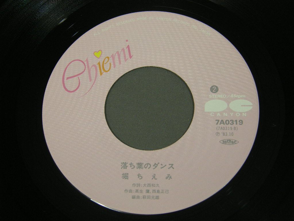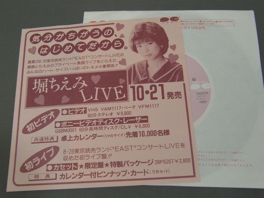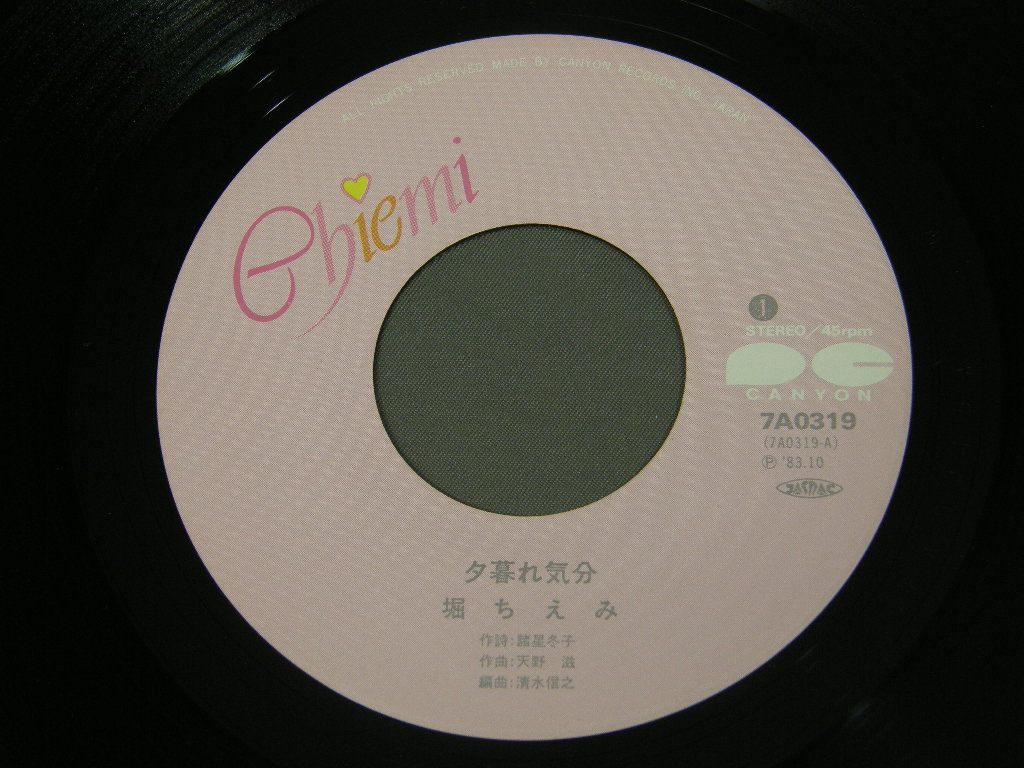 CHIEMI HORI堀ちえみ/ YUUGURE KIGIBUN夕暮れ気分 7A0319 製造国:日本盤 / Media:7inch外観:EX盤の状態:EX+ 価格(税込):¥440 送料 7inch:定形外郵便 360円~LP:定形外郵便 660円~送料は、注文の最終画面で確認頂けます。 > > CHIEMI HORI/ YUUGURE KIGIBUN 外観 (EX)特記事項:あまりヨレやよごれは無い感じ。裏ジャケのクーポン券部分は切れています。外観EXの共通説明:ダメージが限定的。中古品としては保存状態がよい方。シミ、ヨゴレ、スレ 少し~軽度。 盤の状態 (EX+)特記事項:あまりスリキズは無い感じ。盤EX+の共通説明:盤面の極薄いスリキズ、スレ少し程度 音に出そうなものは無いように見える(極軽微なソフトティック音は除く)。 Tweet それぞれの画像をクリックすると、大きい写真が見られます こちらの商品もお勧めです 770円 SHOKO SAWADA沢田聖子 / GRADUATION卒業 880円 SEIKO MATSUDA松田聖子 / WINDY SHADOW 880円 SONOKO KAWAI河合その子 / SONOKOその子 990円 SONOKO KAWAI河合その子 / SIESTAシエスタ 440円 ERI E-AREA新田恵利 / ERI E-AREA 1,210円 PINK LADYピンク・レディー / AMERICA ! AMERICA ! AMERICA !アメリカ!アメリカ!アメリカ! 1,320円 MIKI ASAKURA麻倉未稀 / SEXY ELEGANCEセクシー・エレガント 1,210円 AKINA NAKAMORI中森明菜 / SILENT LOVE