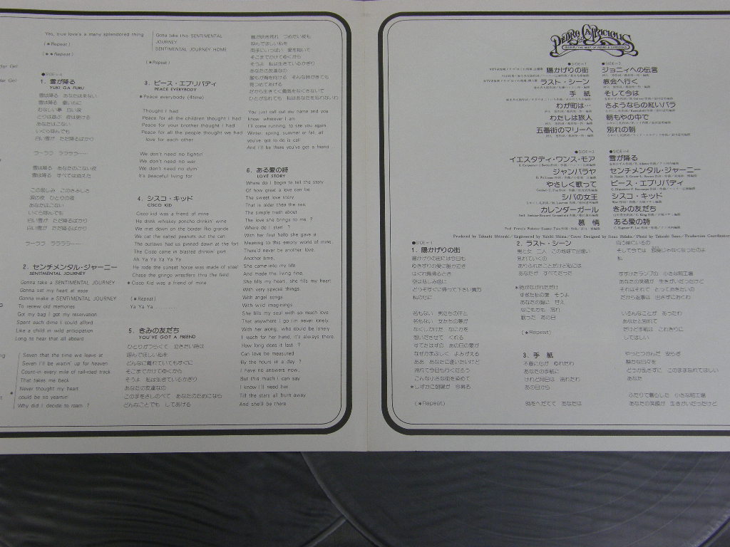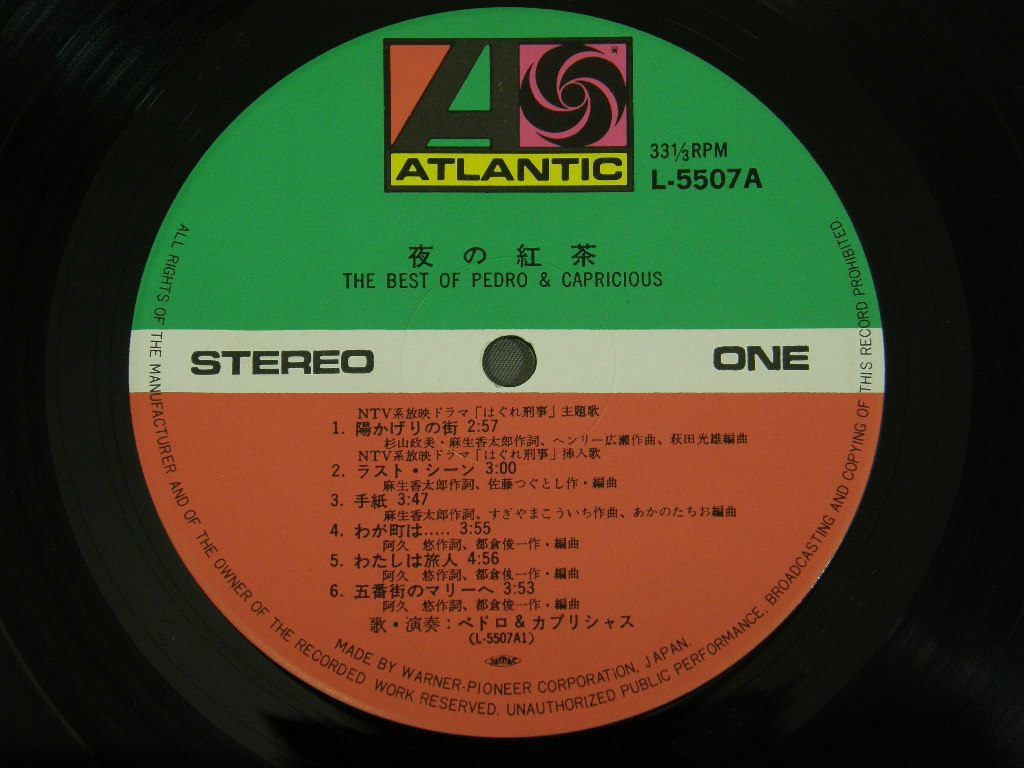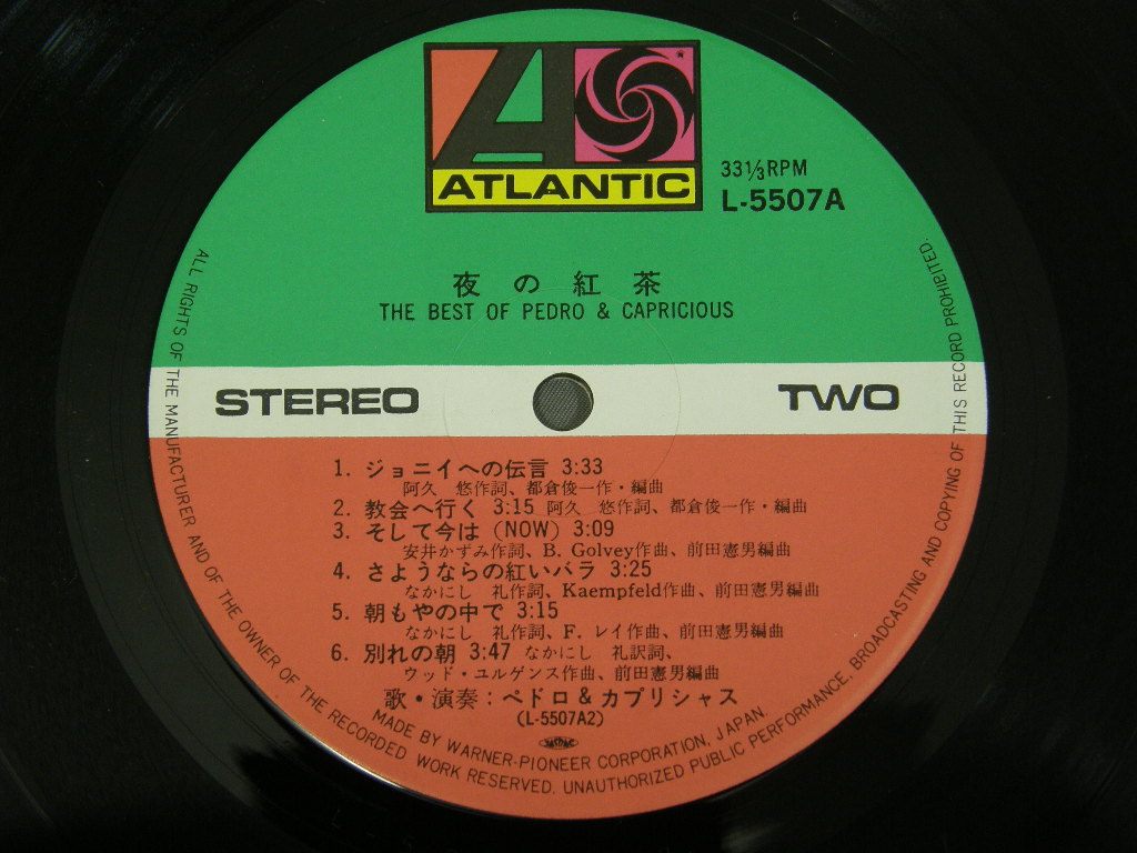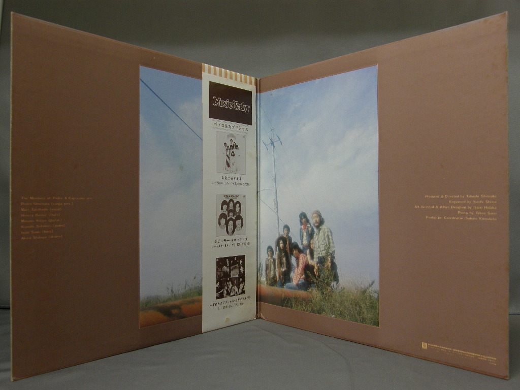 ペドロ・アンド・カプリシャス/夜の紅茶 BEST OF PEDORO & CAPRICIOUS 帯付 L5507-8A 製造国:日本盤 / Media:LP外観:EX盤の状態:EX帯:EX- 価格(税込):¥325(売約済) 送料 7inch:定形外郵便 360円~LP:定形外郵便 660円~送料は、注文の最終画面で確認頂けます。 > > ペドロ・アンド・カプリシャス/夜の紅茶 BEST OF PEDORO & CAPRICIOUS 帯付 外観 (EX)特記事項:ヘリスレや背で日焼け少し。ジャケ表面はあまりスレやスリキズは無い感じ。表裏ジャケはそうでも無いですが、見開きには多少シミ有り。歌詞カード付。外観EXの共通説明:ダメージが限定的。中古品としては保存状態がよい方。シミ、ヨゴレ、スレ 少し~軽度。 盤の状態 (EX)特記事項:薄いスリキズ、スレ軽く有る程度。一見して綺麗そうな状態です。盤EXの共通説明:盤面のスリキズが薄いものが少し~軽度 音に出そうなものは無いように見える(軽微なソフトティック音は除く)。 帯の状態 (EX-):しっかりした感じですが見開き側にシミ多少有り。 Tweet それぞれの画像をクリックすると、大きい写真が見られます こちらの商品もお勧めです 770円 ALL NIGHTERSオールナイターズ / 2nd ALBUMKIRAっとジェネレーション 770円 LAYLAレイラ / SEISHUN NO KISEKI青春の奇跡 770円 TAKURO YOSHIDA吉田拓郎 / SHANGRI-LAシャングリ・ラ 990円 RYOKO MORIYAMA森山良子 / RYOKO NOW旅立ち-森山良子-1972 880円 SQUAREスクエア / ROCKOONロックーン 1,210円 TAKURO YOSHIDAよしだたくろう / HELLO !元気です。 880円 ALFEEアルフィー / ALFEE`S LAW 990円 HISAO KUROSAWA-COLLEGE POPS SINGERS etc黒沢久雄 フォーククルセダーズ ザリガニーズ 他 / JAPANESE FOLK SONG ENCYCLOPEDIA日本フォーク大百科事典
