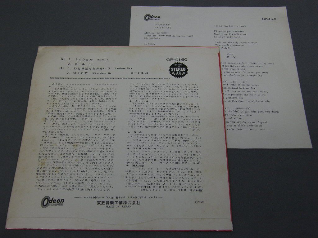 BEATLESビートルズ/MITCHELLE EPミッシェルEP OP-4160 製造国:日本盤 / Media:7inch外観:EX-盤の状態:EX- 価格(税込):¥770 送料 7inch:定形外郵便 360円~LP:定形外郵便 660円~送料は、注文の最終画面で確認頂けます。 > > BEATLES/MITCHELLE EP 外観 (EX-)特記事項:レコード取り出し口上角で折れ跡有りますが、全体的にヨレ感は少ない感じ。裏ジャケにシミ軽多少有り。外観EX-の共通説明:ダメージ軽度~多少。 中古品としては普通の状態。シミ、ヨゴレ、スレなど軽く~多少。 盤の状態 (EX-)特記事項:薄いスリキズ、スレ多少有りますが、軽微なものが中心の様子。チリは軽度、プチは殆ど無いか1〜2箇所の軽プチぐらいでしょう。盤EX-の共通説明:盤面のスリキズが多少有り。音に出そうなものは殆ど無いように見える~さほど気にならないぐらいの軽いプチ数カ所程度。 Tweet それぞれの画像をクリックすると、大きい写真が見られます こちらの商品もお勧めです 1,650円 WINGSウィングス / OVER AMERICAUSAライブ 990円 WINGS / VENUS AND MARS 880円 WINNGSウイングス / VENUS AND MARS WIGSヴィーナス・アンド・マース 880円 PAUL MCCARTNEYポール・マッカートニー / TUG OF WARタッグ・オブ・ウォー 1,210円 WINGSウイングス / GREATEST HITSグレイテスト・ヒット 1,320円 WINGSウイングス / WINGS OVER AMERICAウイングス U.S.A.ライヴ!! 770円 WINGSウイングス / AT THE SPEED OF SOUNDスピード・オブ・サウンド 770円 PAUL MCCARTNEY&WINGSポール・マッカートニー&ウイングス / BAND ON THE RUNバンド・オン・ザ・ラン