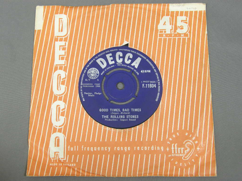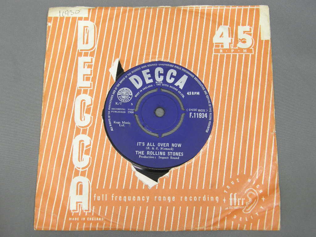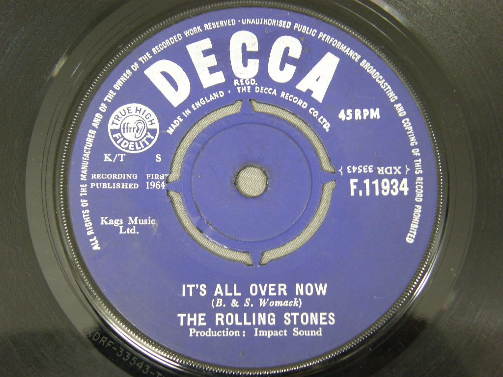 ROLLING STONES/IT`S ALL OVER NOW F11934 製造国:英国盤 / Media:7inchMatrix:4C / 4C外観:EX-盤の状態:EX- 価格(税込):¥2,640 送料 7inch:定形外郵便 360円~LP:定形外郵便 660円~送料は、注文の最終画面で確認頂けます。 > > ROLLING STONES/IT`S ALL OVER NOW 外観 (EX-)特記事項:DECCA社のカンパニースリーブ付。底抜け小、センター穴に切れやヨレ多少有り。全体的にヨレはそれほど多い感じでは無いです。両面ともレコード取出し口端に書き込み有り。外観EX-の共通説明:ダメージ軽度~多少。 中古品としては普通の状態。シミ、ヨゴレ、スレなど軽く~多少。 盤の状態 (EX-)特記事項:薄い表面スレ、細かいスリキズ等多少。音には出そうにいない感じのものです。モノ針で少し聴いてみましたが、チリノイズ送り溝で軽く有るぐらい。曲中は殆ど感じること無く、音自体もしっかりクリアーに鳴っているようでした。盤EX-の共通説明:盤面のスリキズが多少有り。音に出そうなものは殆ど無いように見える~さほど気にならないぐらいの軽いプチ数カ所程度。 Tweet それぞれの画像をクリックすると、大きい写真が見られます こちらの商品もお勧めです 2,750円 ROLLING STONES / EMOTIONAL RESCUE + POSTEREMOTIONAL RESCUE ポスター付
