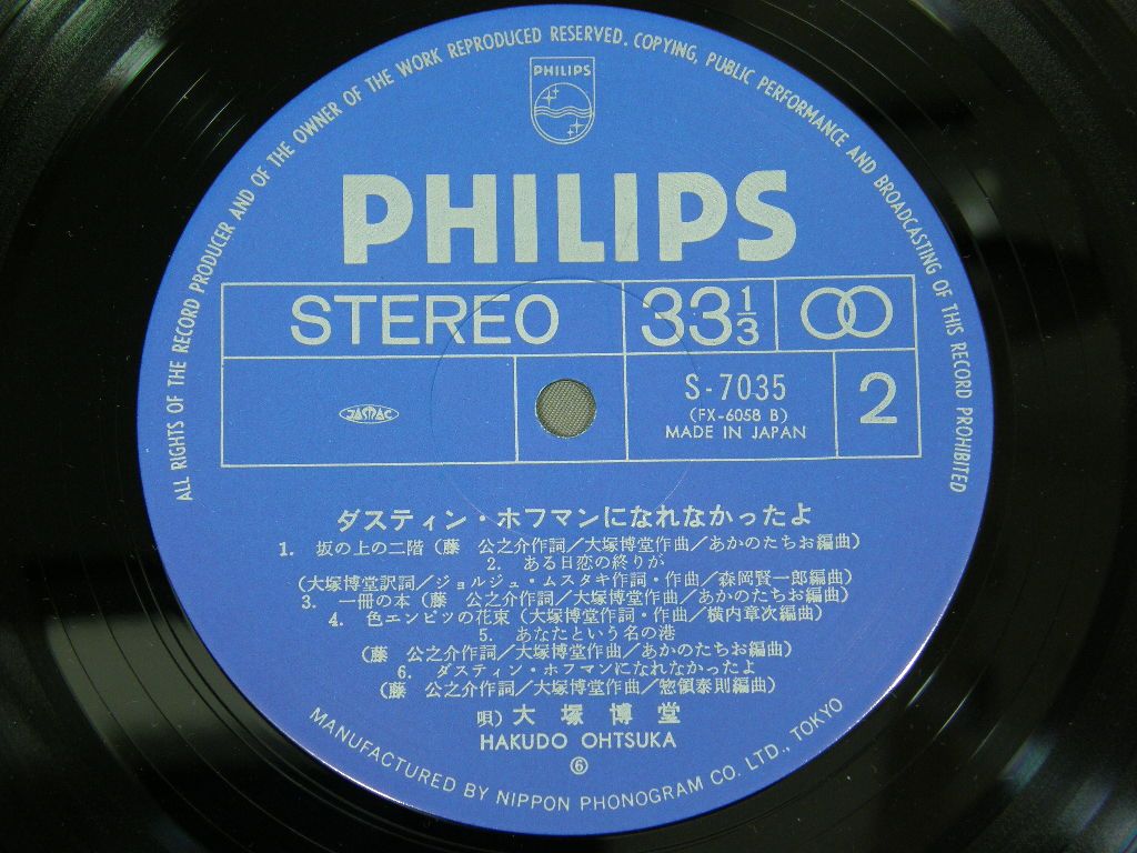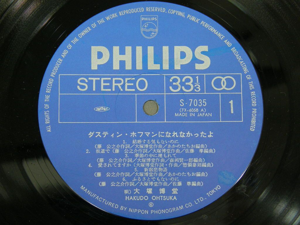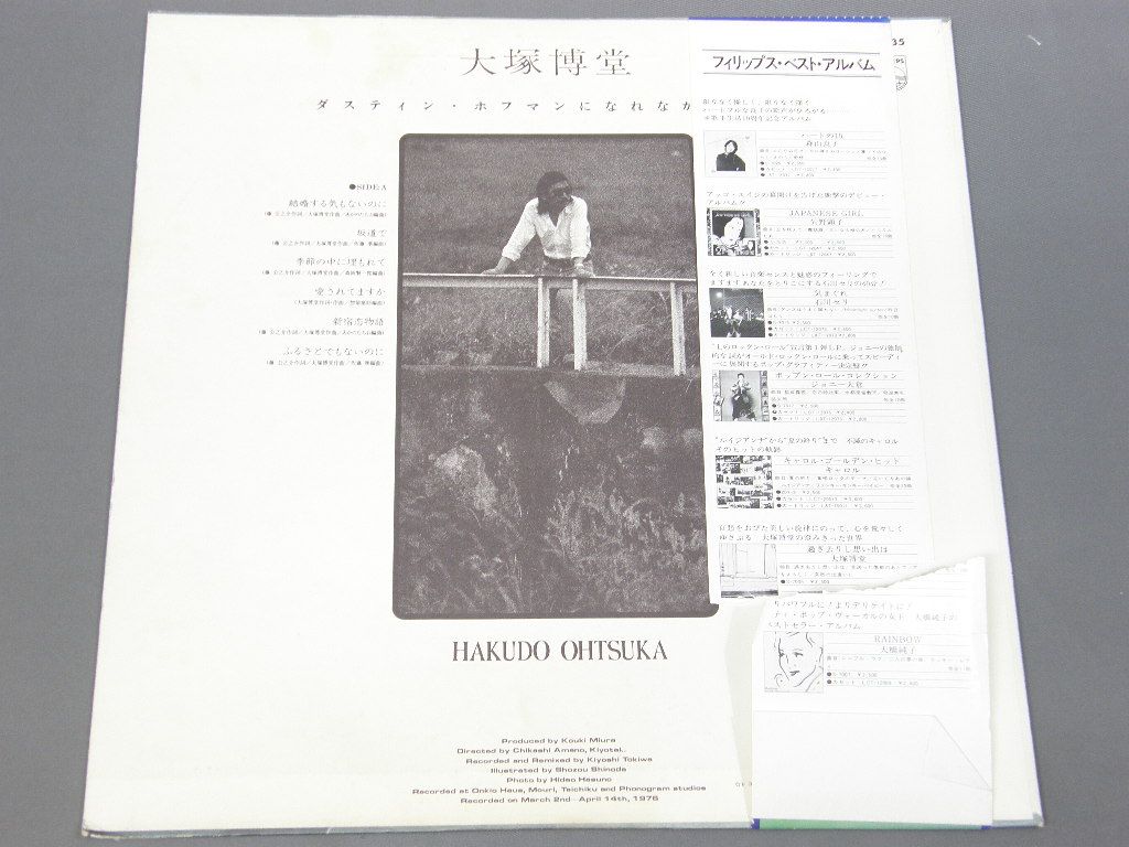 HAKUDO OHTSUKA大塚博堂/ ダスティン・ホフマンになれなかったよ 帯付 S-7035 製造国:日本盤 / Media:LP外観:EX盤の状態:VG+帯:EX- 価格(税込):¥2,090(売約済) 送料 7inch:定形外郵便 360円~LP:定形外郵便 660円~送料は、注文の最終画面で確認頂けます。 > > HAKUDO OHTSUKA/ 外観 (EX)特記事項:レコード取り出し口上下ヘリでスレ多少有り。上ヘリの方は僅かに割れも。ジャケ表面はあまりスレやスリキズ無くきれいな状態。裏ジャケ側にシミ軽等薄いよごれ多少有り。表側は僅かに薄いシミが有りますがシミやよごれは多くないです。歌詞カード付。外観EXの共通説明:ダメージが限定的。中古品としては保存状態がよい方。シミ、ヨゴレ、スレ 少し~軽度。 盤の状態 (VG+)特記事項:スレやスリキズやや多め。プチでそうなものも有りますが、軽微なものが中心です。盤VG+の共通説明:盤面にスリキズが多少~やや有り、音に出そうなものも多少ある。 帯の状態 (EX-):表側はあまりヨレは無い感じですが、裏で切れ有り。 Tweet それぞれの画像をクリックすると、大きい写真が見られます こちらの商品もお勧めです 770円 IRUKAイルカ / JULIAジュリア 1,760円 TAKASHI NISHIOKA西岡たかし / LIFEらいふ 1,320円 TAKASHI NISHIOKA西岡たかし / SOUPスープ 880円 IRUKAイルカ / SHURIKUSUイルカのうた-イルカ・シュリークス時代 770円 KATSUYUKI MIYAZAWA宮沢勝之 / LIVE IN KIYOSE 81 AUTOGRAPHED陽気に生きようこの人生をさ LIVE IN 清瀬 サイン付 2,750円 JACKSジャックス / LEGEND 1,320円 KIYOSHI HASEGAWA長谷川きよし / TOUMEINA HITOTOKIWO透明なひとときを 1,980円 HAKO YAMAZAKI山崎ハコ / NINGEN MAGAI人間まがい