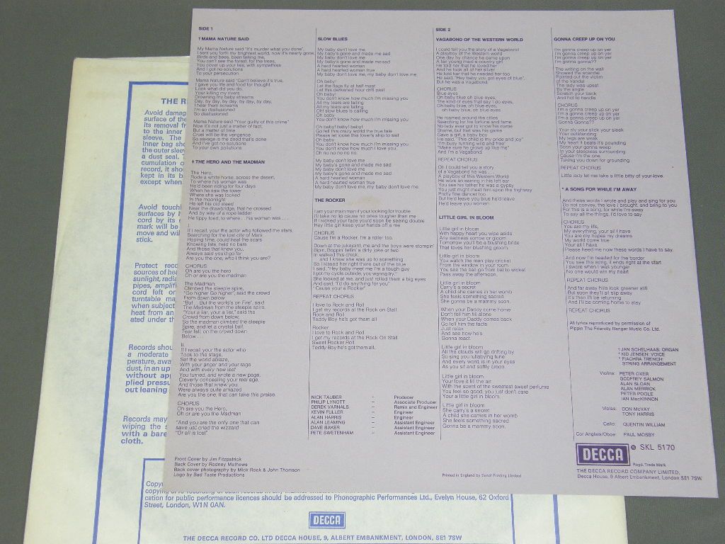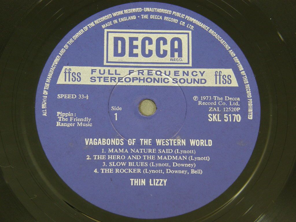 THIN LIZZY/VAGABONDS OF WESTERN WORLD with Insert初回カード付 SKL5170 製造国:英国盤 / Media:LPMatrix:5W / 3W外観:EX盤の状態:EX+ 価格(税込):¥13,200(売約済) 送料 7inch:定形外郵便 360円~LP:定形外郵便 660円~送料は、注文の最終画面で確認頂けます。 レコード検索 > > THIN LIZZY/VAGABONDS OF WESTERN WORLD with Insert 外観 (EX)特記事項:角スレが少し。ジャケ表面はあまりスレやスリキズは無い感じ。歌詞カード付は初回のみ。外観EXの共通説明:ダメージが限定的。中古品としては保存状態がよい方。シミ、ヨゴレ、スレ 少し~軽度。 盤の状態 (EX+)特記事項:極薄のスリキズ、スレ僅か程度。一見して美盤です。曲間等を中心に聴いてみましたが、チリノイズ少しだけのとても綺麗な再生具合でした。盤EX+の共通説明:盤面の極薄いスリキズ、スレ少し程度 音に出そうなものは無いように見える(極軽微なソフトティック音は除く)。 その他:73年3rd LP Tweet それぞれの画像をクリックすると、大きい写真が見られます こちらの商品もお勧めです 5,500円 DUST SPRINGFEILD / GIRL CALLED DUSTY 3,850円 SILVERWING / LIVE AND KICKING 5,500円 SCORPIONS / TAKEN BY FORCE 2,420円 MICHAEL SCHENKER GROUP / ROCK WILL NEVER DIE 7,700円 SLEDGEHAMMER / BLOOD ON THEIR HANDS