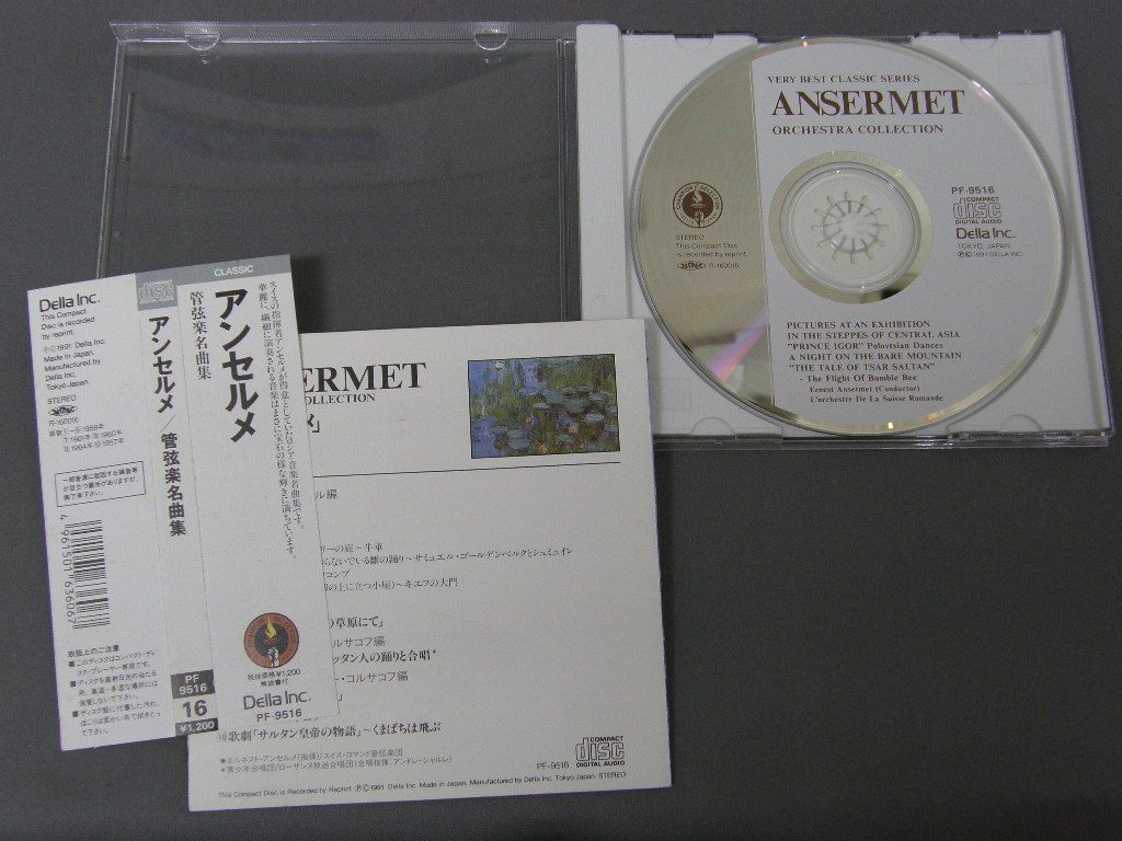 ANSERMET アンセルメ/ORCHESTRA COLLECTION管弦楽名曲集 帯付 PF9516 製造国:日本盤 / Media:CD外観:EX盤の状態:EX 価格(税込):¥330 送料 7inch:定形外郵便 360円~LP:定形外郵便 660円~送料は、注文の最終画面で確認頂けます。 > > ANSERMET /ORCHESTRA COLLECTION 外観 (EX)特記事項:ケースに軽いスリキズ有り。折りたたみタイプのカードジャケ。ヨレはあまり無い感じですが、経年風の薄いよごれ有り。外観EXの共通説明:ダメージが限定的。中古品としては保存状態がよい方。シミ、ヨゴレ、スレ 少し~軽度。 盤の状態 (EX)特記事項:薄いスリキズが少し有りますが微細な印象。全体的には概ね綺麗な感じの盤面です。盤EXの共通説明:盤面のスリキズが薄いものが少し~軽度 音に出そうなものは無いように見える(軽微なソフトティック音は除く)。 帯の状態 ():あまりヨレは無い感じですうが背部分にヨゴレ軽有り。 Tweet それぞれの画像をクリックすると、大きい写真が見られます こちらの商品もお勧めです 1,540円 BEECHAM - ROYAL PHILHARMONIC ORCHESTAビーチャム - ロイヤル・フィルハーモニー管弦楽団 / MOZART - SYMPHONY NO41 JUPITERモーツアルト交響曲第41番ジュピター 1,540円 ENTREMONT - ORMANDY - PHILADELPHIA ORCHESTRAアントルモン - オーマンディ - フィラデルフィア交響楽団 / LISZT - CONCERTO NO1リスト - ピアノ協奏曲第1番 990円 STOKOVSKI - RCA SYMPHONY ORCHESTRAストコフスキー - RCA交響楽団 / LISZT - HUNGARIAN RHAPSODYリスト - ハンガリー狂詩曲 1,760円 KARAJAN - BERLINER PHILHARMONIKERカラヤン - ベルリン・フィル / HAYDN - THE CREATION 2LP BOXハイドン - 天地創造 2枚組 2,420円 HIROYUKI IWAKI - THE NHK SYMPHONY ORCHESTRA岩城宏之 - NHK交響楽団 / TOSHIRO MAYUZUMI - BUGAKU黛 敏郎 - バレエ音楽`舞楽` 1,540円 WALTER - COLUMBIA SYMPHONY ORCHESTRAワルター - コロンビア交響楽団 / MAHLER - SYMPHONY NO1マーラー交響曲第1番 990円 TALICH - CZECH PHILHARMONIC ORCH.ターリッヒ - チェコ・フィルハーモニー管弦楽団 / DVORAK - STABAT MATERドヴォルザーク - スターバト・マーテル 2,200円 BOULT + LONDON PHILHARMONIC ORCHESTRA / VAUGHAN WILLIAMS - THE NINE SYMPHONIES 9 LP BOX