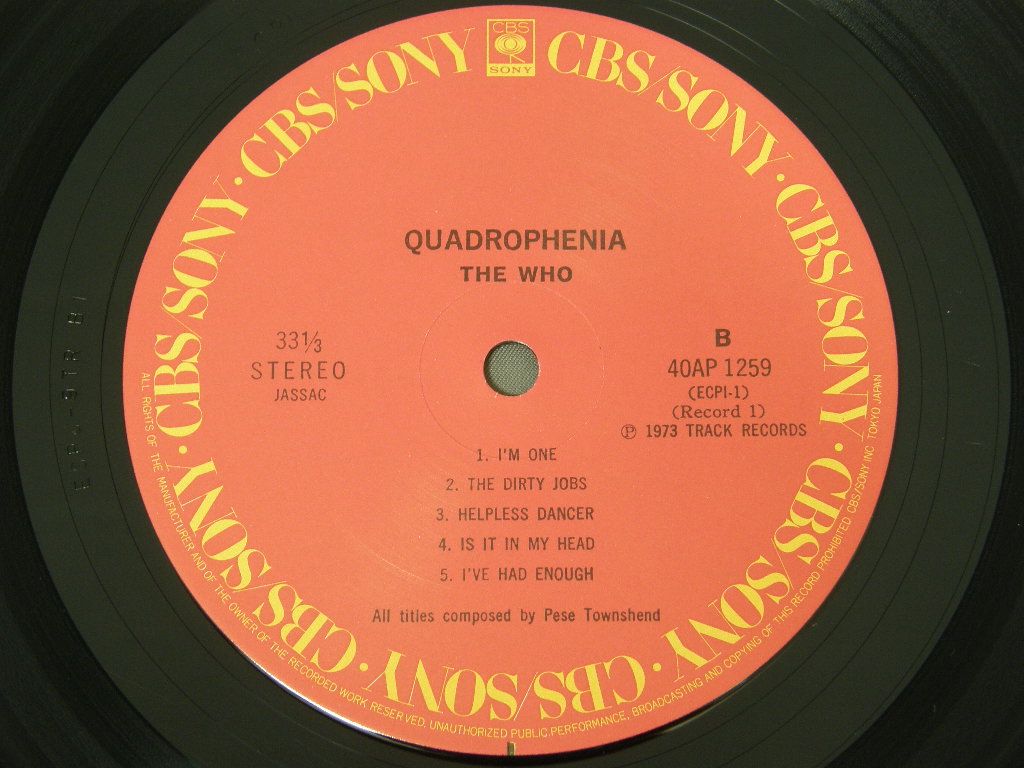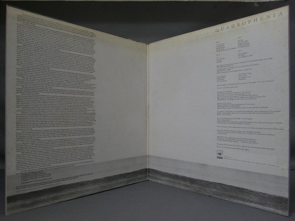 WHO/QUADROPHENIA 四重人格 40AP 1259/60 製造国:日本盤 / Media:LP外観:EX盤の状態:EX+ 価格(税込):¥1,650(売約済) 送料 7inch:定形外郵便 360円~LP:定形外郵便 660円~送料は、注文の最終画面で確認頂けます。 レコード検索 > 全てのジャンル > WHO/QUADROPHENIA 四重人格 外観 (EX)特記事項:全体的にあまりスレやスリキズは無い感じ。表裏ジャケ共に薄いシミ軽多少有り。見開きも上の方にシミ軽やや有りです。解説カードと厚いブックレット付。めくりヨレはあまり無いです。外観EXの共通説明:ダメージが限定的。中古品としては保存状態がよい方。シミ、ヨゴレ、スレ 少し~軽度。 盤の状態 (EX+)特記事項:薄いスリキズ、スレ僅か程度。一見してとてもきれいな状態です。盤EX+の共通説明:盤面の極薄いスリキズ、スレ少し程度 音に出そうなものは無いように見える(極軽微なソフトティック音は除く)。 Tweet それぞれの画像をクリックすると、大きい写真が見られます こちらの商品もお勧めです 2,200円 WHOフー / IT`S HARDイッツ・ハード 1,650円 ROGER DALTREYロジャー・ダルトリー / UNDER A RAGING MOON月の影