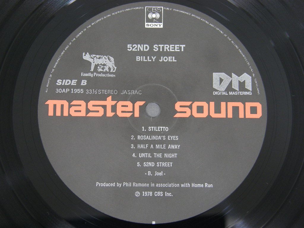 BILLY JOEL/52nd STREET マスターサウンド盤帯付 30AP 1955 製造国:日本盤 / Media:LP外観:EX+盤の状態:EX+帯:EX 価格(税込):¥2,420(売約済) 送料 7inch:定形外郵便 360円~LP:定形外郵便 660円~送料は、注文の最終画面で確認頂けます。 > > BILLY JOEL/52nd STREET マスターサウンド盤帯付 外観 (EX+)特記事項:あまりスレやスリキズ無くきれいな状態。解説カード付。マスターサウンドの解説カードもあまりめくりヨレは無い感じ。マスターサウンド・インナーにシミが少し。オリジナルインナーはレコード取り出し口付近で軽いヨレが多少。抜けは無いです。外観EX+の共通説明:中古としては美品、一見してきれいでダメージが軽微。シミ、ヨゴレ、スレ有っても僅か~少し。 盤の状態 (EX+)特記事項:薄いスリキズ、スレ僅か程度。一見してとてもきれいな状態です。盤EX+の共通説明:盤面の極薄いスリキズ、スレ少し程度 音に出そうなものは無いように見える(極軽微なソフトティック音は除く)。 帯の状態 (EX):あまりヨレ無くしっかりした状態。 Tweet それぞれの画像をクリックすると、大きい写真が見られます こちらの商品もお勧めです 662円 RICK SPRINGFIELDリック・スプリングフィールド / LIVING IN OZリビング・イン・OZ 770円 JOHN DENVERジョン・デンバー / JOHN DENVER`S GREATEST HITS故郷の詩 990円 JACK BRUCEジャック・ブルース / SONGS FOR A TAILOR真髄 880円 PAUL SIMONポール・サイモン / ONE-TRICK PONYワン・トリック・ポニー 660円 ERIC CARMENエリック・カルメン / CHANGE OF HEARTチェンジ・オブ・ハート 770円 BERTIE HIGGINSバーティ・ヒギンズ / JUST ANOTHER DAY IN PARADISEカサブランカ 1,320円 GARY WRIGHTゲイリー・ライト / LIGHT OF SMILESライト・オブ・スマイル 1,320円 JONNY RIVERSジョニー・リバース / MISTER GO ! GO ! 60s ISSUEミスター・ゴー・ゴー ペラジャケ