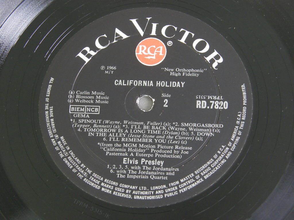 ELVIS PRESLEY/CALIFORNIA HOLIDAY / MONO 美品 RD-7820 製造国:英国盤 / Media:LPMatrix:1K | 1K外観:EX盤の状態:EX+ 価格(税込):¥8,800 送料 7inch:定形外郵便 360円~LP:定形外郵便 660円~送料は、注文の最終画面で確認頂けます。 > > ELVIS PRESLEY/CALIFORNIA HOLIDAY / MONO 外観 (EX)特記事項:レコード取り出し口上下でスレ多少有り。表ジャケは軽いレコードリングスレが少し出ていますが、全体的にはスレやスリキズ、コーティングのヨレシワやよごれの少ない良い状態。裏ジャケは経年風の薄めのよごれが少し。中央やや左上に薄い書き込み有り小有り。外観EXの共通説明:ダメージが限定的。中古品としては保存状態がよい方。シミ、ヨゴレ、スレ 少し~軽度。 盤の状態 (EX+)特記事項:全体的に極薄のスリキズ、スレ等少しの様子です。曲間等を中心に聴いてみましたが、チリノイズ少しだけでした。盤EX+の共通説明:盤面の極薄いスリキズ、スレ少し程度 音に出そうなものは無いように見える(極軽微なソフトティック音は除く)。 Tweet それぞれの画像をクリックすると、大きい写真が見られます こちらの商品もお勧めです 6,600円 CLIFF RICHARDクリフ・リチャード / LISTEN TO CLIFF 5,500円 ELVIS PRESLEY / FUN IN AACAPULCO MONO 4,400円 VARIOUS PHIL SPECTOR GROUPS / PHIL SPECTOR WALL OF SOUNDS VOL.4 YESTERDAY`S HITS 6,600円 ELVIS PRESLEY / CALIFORNIA HOLIDAY MONO 7,150円 ELVIS PRESLEY / GIRLS ! GIRLS ! GIRLS ! / MONO 5,500円 SPOTNICS / IN LONDON 6,600円 CLIFF RICHARDクリフ・リチャード / CLIFF SINGS / 2nd ALBUM 4,950円 VENTURES / TWIST PARTY MONO