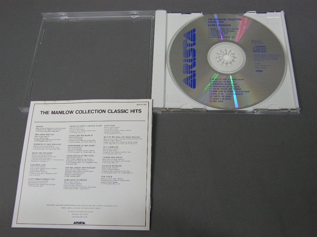 BARRY MANILOW/MANILOW COLEECTION CLASSIC HITS BVCA-169 製造国:日本盤 / Media:CD外観:EX+盤の状態:EX+ 価格(税込):¥440 送料 7inch:定形外郵便 360円~LP:定形外郵便 660円~送料は、注文の最終画面で確認頂けます。 > > BARRY MANILOW/MANILOW COLEECTION CLASSIC HITS 外観 (EX+)特記事項:ケースに軽いスリキズが少々。ブックレット・タイプ・ジャケ。ジャケ裏にケースの爪跡が少し。ジャケの天に日焼け跡少し。外観EX+の共通説明:中古としては美品、一見してきれいでダメージが軽微。シミ、ヨゴレ、スレ有っても僅か~少し。 盤の状態 (EX+)特記事項:微細なスリキズ少々。きれいな感じの盤面です。盤EX+の共通説明:盤面の極薄いスリキズ、スレ少し程度 音に出そうなものは無いように見える(極軽微なソフトティック音は除く)。 Tweet それぞれの画像をクリックすると、大きい写真が見られます こちらの商品もお勧めです 1,320円 IAN MATTHEWSイアン・マシューズ / DTEALIN` HOMEスティーリン・ホーム 1,980円 RY COODERライ・クーダ / BORDERLINEボーダーライン 4,950円 JOIN MARTYN / SUNDAY`S CHILD 770円 MARK GOLDENBERG / L`HOMME A VALISE鞄を持った男 3,300円 ELVIS PRESLEYBLUE HAWAII MONO / 2,200円 ELTON JOHN / VERY ALIVE 3,300円 BRUCE SPRINGSTEEN / TOBI SMILES 2,200円 RY COODERライ・クーダ / INTO THE PURPLE VALLEY紫の峡谷