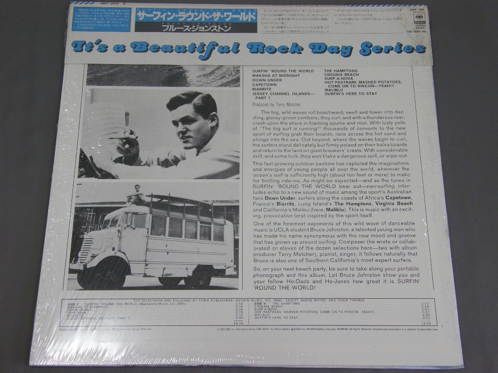 BRUCE JOHNSTON/SURFIN` ROUND THE WORLD 帯付 20AP 1986 製造国:日本盤 / Media:LP外観:EX+盤の状態:EX+帯:EX+ 価格(税込):¥4,400(売約済) 送料 7inch:定形外郵便 360円~LP:定形外郵便 660円~送料は、注文の最終画面で確認頂けます。 > > BRUCE JOHNSTON/SURFIN` ROUND THE WORLD 外観 (EX+)特記事項:シュリンク袋に入った状態。解説カード付。外観EX+の共通説明:中古としては美品、一見してきれいでダメージが軽微。シミ、ヨゴレ、スレ有っても僅か~少し。 盤の状態 (EX+)特記事項:極薄いスリキズ、スレ少しだけ。一見してとてもきれいな状態です。盤EX+の共通説明:盤面の極薄いスリキズ、スレ少し程度 音に出そうなものは無いように見える(極軽微なソフトティック音は除く)。 帯の状態 (EX+):シュリンク袋に入った状態。 Tweet それぞれの画像をクリックすると、大きい写真が見られます こちらの商品もお勧めです 1,210円 BEACH BOYSビーチ・ボーイズ / BEACH BOYSビーチ・ボーイズ