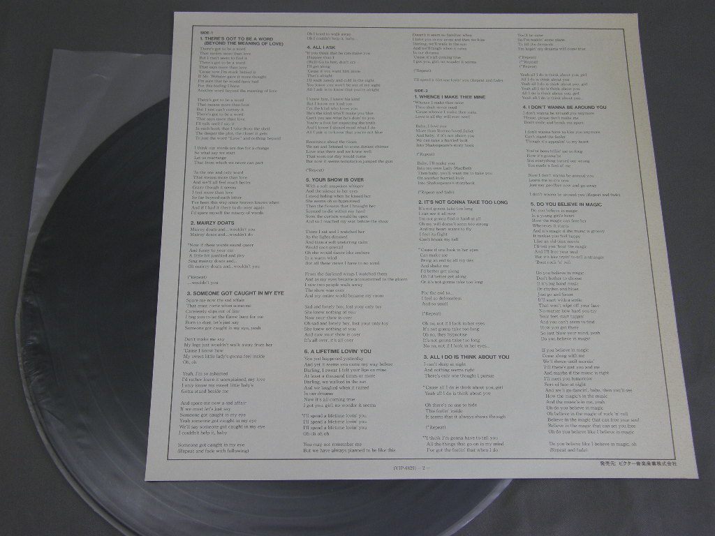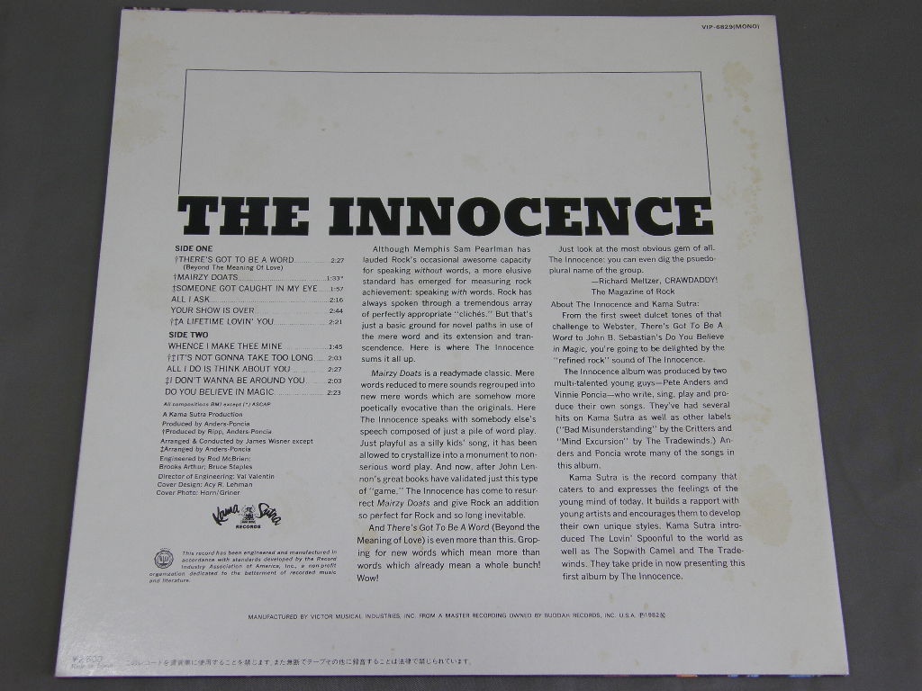 INNOCENCE/SAME TITLE VIP-6829 製造国:日本盤 / Media:LP外観:EX-盤の状態:EX+ 価格(税込):¥1,047(売約済) 送料 7inch:定形外郵便 360円~LP:定形外郵便 660円~送料は、注文の最終画面で確認頂けます。 レコード検索 > 全てのジャンル > INNOCENCE/SAME TITLE 外観 (EX-)特記事項:あまりスレやスリキズはない感じ。裏ジャケにシミ有り。表ジャケ側も背上付近に僅かに薄いシミ軽有り。解説カード付。外観EX-の共通説明:ダメージ軽度~多少。 中古品としては普通の状態。シミ、ヨゴレ、スレなど軽く~多少。 盤の状態 (EX+)特記事項:極薄いスリキズ、スレ少しだけ。一見してとてもきれいな状態です。盤EX+の共通説明:盤面の極薄いスリキズ、スレ少し程度 音に出そうなものは無いように見える(極軽微なソフトティック音は除く)。 Tweet それぞれの画像をクリックすると、大きい写真が見られます こちらの商品もお勧めです 550円 GRAND FUNK RAILROADグランド・ファンク・レイルロード / CAUGHT IN THE ACTグランド・ファンク・ツアー75 770円 SANTANAサンタナ / FESTIVALフェスティバル 660円 DOOBIE BROTHERSドゥービー・ブラザーズ / ONE STEP CLOSERワン・ステップ・クローサー 1,210円 5TH DIMENSIONフィフス・ディメンソン / THE BESTフィフス・ディメンソン 440円 AIR SUPPLYエア・サプライ / ONE THAT YOU LOVEシーサイド・ラブ 660円 SUZI QUATRO / SUZI QUATRO STORY GOLDEN HITS 990円 BOSTONボストン / DON`T LOOK BACKドント・ルック・バック(新惑星着陸) 1,210円 STYXスティクス / PARADISE THEATREパラダイス・シアター