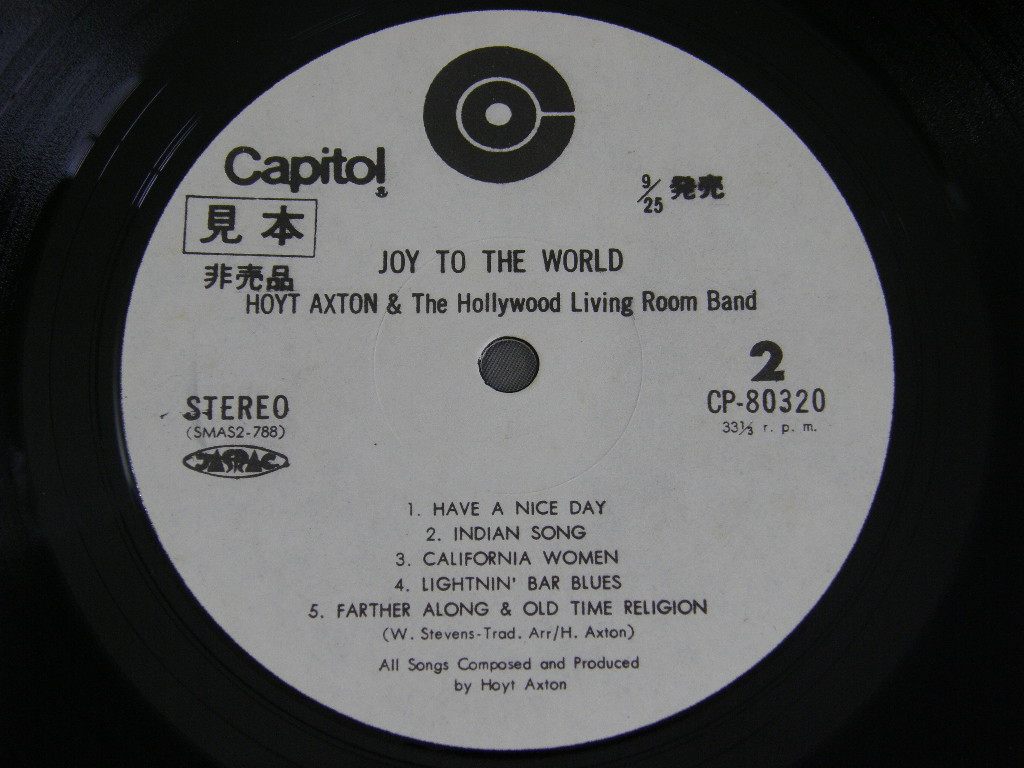 HOYT AXTON AND HOLLYWOOD LIVING ROOM BAND/JOY TO THE WORLD 喜びの世界 ROCK NOW帯付 CP80320 製造国:日本盤 / Media:LP外観:EX盤の状態:EX+帯:VG+ 価格(税込):¥1,572(売約済) 送料 7inch:定形外郵便 360円~LP:定形外郵便 660円~送料は、注文の最終画面で確認頂けます。 レコード検索 > 全てのジャンル > HOYT AXTON AND HOLLYWOOD LIVING ROOM BAND/JOY TO THE WORLD 喜びの世界 ROCK NOW帯付 外観 (EX)特記事項:あまりスレやスリキズは無い感じ。見開きに薄いよごれ有り。外観EXの共通説明:ダメージが限定的。中古品としては保存状態がよい方。シミ、ヨゴレ、スレ 少し~軽度。 盤の状態 (EX+)特記事項:薄いスリキズ、表面スレ少しだけ。一見してきれいな状態です。盤EX+の共通説明:盤面の極薄いスリキズ、スレ少し程度 音に出そうなものは無いように見える(極軽微なソフトティック音は除く)。 帯の状態 (VG+):下へりと表側の中辺りでで切れあり。 その他:白見本盤 Tweet それぞれの画像をクリックすると、大きい写真が見られます こちらの商品もお勧めです 1,980円 RIC OCASEKリック・オケイセク / BEATITUDEビアティチュード 1,320円 SANTANAサンタナ / MOON FLAWERムーン・フラワー 990円 TONY ORLANDO & DAWNトニー・オーランド&ドーン / HE DON`T LOVE YOU(LIKE I LOVE YOU)恋のシーソー・ゲーム 1,210円 THREE SUNSスリー・サンズ / GOLDEN ALBUMゴールデン・アルバム 1,320円 HASSLESハッスルズ / HASSLESハッスルズ 770円 MARC TANNER BANDマーク・タナー・バンド / TEMPTATIONテンプテーション 770円 TOTO / ISOLATIONアイソレーション 1,210円 MOUNTAINマウンテン / FLOWERS OF EVILマウンテン・ライヴ 悪の華(フィルモアに咲いた悪の華)