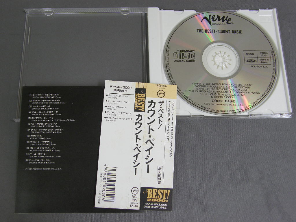 COUNT BASIE/BEST POCJ-1525 製造国:日本盤 / Media:CD外観:EX盤の状態:EX+帯:EX 価格(税込):¥440 送料 7inch:定形外郵便 360円~LP:定形外郵便 660円~送料は、注文の最終画面で確認頂けます。 > > COUNT BASIE/BEST 外観 (EX)特記事項:2つ折のカードタイプ・ジャケ。全体的にあまりめくりヨレ等無し。表紙と内側に弱いよごれと裏表紙に弱いスレが少し有ります。外観EXの共通説明:ダメージが限定的。中古品としては保存状態がよい方。シミ、ヨゴレ、スレ 少し~軽度。 盤の状態 (EX+)特記事項:微細なスリキズが少々。きれいな感じの盤面です。盤EX+の共通説明:盤面の極薄いスリキズ、スレ少し程度 音に出そうなものは無いように見える(極軽微なソフトティック音は除く)。 帯の状態 (EX):表裏面にシミが少し、裏面にテープあとと上下部に弱いケースの爪あと軽が有ります。 Tweet それぞれの画像をクリックすると、大きい写真が見られます こちらの商品もお勧めです 1,650円 TOSHIYUKI HONDA本田俊之 / SHANGRI-LAシャングリア(楽園) 2,200円 MARC LEVIN AND HIS FREE UNIT / DRAGON SUITE