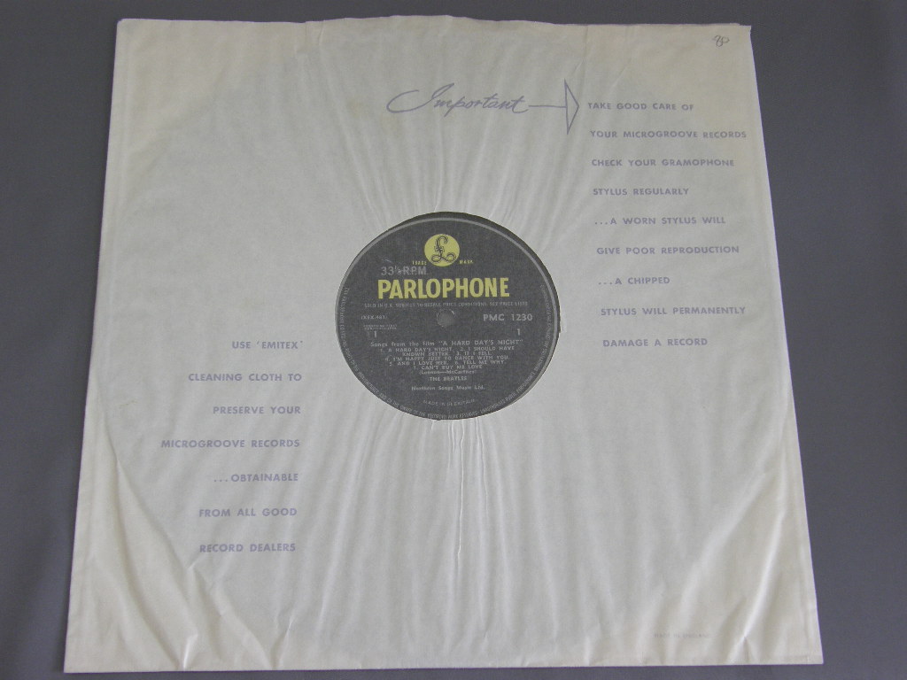 BEATLES/HARD DAY`S NIGHT / MONO PMC1230 製造国:英国盤 / Media:LPMatrix:3N | 3N外観:EX盤の状態:EX 価格(税込):¥16,500(売約済) 送料 7inch:定形外郵便 360円~LP:定形外郵便 660円~送料は、注文の最終画面で確認頂けます。 レコード検索 > 全てのジャンル > BEATLES/HARD DAY`S NIGHT / MONO 外観 (EX)特記事項:角スレ少し。表ジャケ表面は全体的にスレやスリキズ、コーティングのヨレシワは少なめな感じ。レコード取り出し口縁でヨレ多少有り。裏ジャケはレコード取り出し口付近に薄いよごれが少しありますが、全体的にはよごれは薄い感じです。外観EXの共通説明:ダメージが限定的。中古品としては保存状態がよい方。シミ、ヨゴレ、スレ 少し~軽度。 盤の状態 (EX)特記事項:薄いスリキズ、スレ少し程度。一見してとてもきれいな状態です。曲間などを中心に聴いてみましたが、チリノイズ少しだけでした。盤EXの共通説明:盤面のスリキズが薄いものが少し~軽度 音に出そうなものは無いように見える(軽微なソフトティック音は除く)。 Tweet それぞれの画像をクリックすると、大きい写真が見られます こちらの商品もお勧めです 5,500円 GEORGE HARRISON / THIRTY THREE & 1/3 5,500円 JOHN LENNON / SHAVED FISH 4,950円 JOHN & YOKO - PLASTIC ONO BANDF / SOME TIME IN NEW YORK CITY 5,500円 BEATLES / AT THE HOLLYWOOD BOWL 5,500円 GEORGE HARRISON / LIVING IN THE MATERIAL WORLD