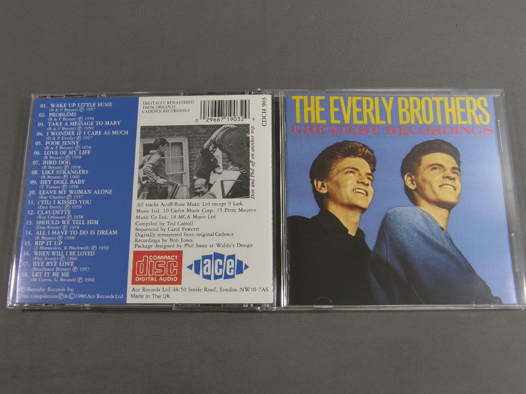 EVERY BROTHERS/Greatest recordings CDCH903 製造国:英国盤 / Media:CD外観:EX+盤の状態:EX+ 価格(税込):¥550 送料 7inch:定形外郵便 360円~LP:定形外郵便 660円~送料は、注文の最終画面で確認頂けます。 > > EVERY BROTHERS/Greatest recordings 外観 (EX+)特記事項:ブックレット・タイプ・ジャケ。全体的にあまりめくりヨレ等無く、よごれも少ないきれいな状態。外観EX+の共通説明:中古としては美品、一見してきれいでダメージが軽微。シミ、ヨゴレ、スレ有っても僅か~少し。 盤の状態 (EX+)特記事項:繊細なスリキズが少々。きれいな感じの盤面です。盤EX+の共通説明:盤面の極薄いスリキズ、スレ少し程度 音に出そうなものは無いように見える(極軽微なソフトティック音は除く)。 Tweet それぞれの画像をクリックすると、大きい写真が見られます こちらの商品もお勧めです