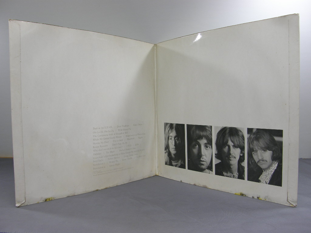 BEATLES/WHITE ALBUM MONO PMC7067/68 製造国:英国盤 / Media:LPMatrix:すべての面 -1外観:VG盤の状態:VG 価格(税込):¥11,000(売約済) 送料 7inch:定形外郵便 360円~LP:定形外郵便 660円~送料は、注文の最終画面で確認頂けます。 レコード検索 > OLD J-POP > BEATLES/WHITE ALBUM MONO 外観 (VG)特記事項:レコード上出しタイプ。通し番号518050番。表裏ジャケ共に底角でスレ。全体的にスレやスリキズ、コーティングのヨレシワは少ない感じですが、表裏ジャケ共に下半分のシミやよごれが気になります。黒のインナーをはじめ、ポートレイトやポスターの付属は有りません。外観VGの共通説明:ダメージが見るからに多い。 盤の状態 (VG)特記事項:薄いスリキズやスレ多め。センターホールの周りを見ても、使用感はそれなりにあります。モノ針で通して聴いてみましたが、意外としっかり音が鳴っていてクリアーに音が飛んできます。B1等、静かな所等はモノ針でもチリ多少感じましたが、全体的には音が勝っていて、オリジナルらしさは十分に感じられる音質と思います。盤VGの共通説明:盤面にスリキズがやや有り、音に出そうなものも所々有る。 Tweet それぞれの画像をクリックすると、大きい写真が見られます こちらの商品もお勧めです 5,500円 GEORGE HARRISON / LIVING IN THE MATERIAL WORLD 5,500円 BEATLES / AT THE HOLLYWOOD BOWL 5,500円 GEORGE HARRISON / THIRTY THREE & 1/3 5,500円 JOHN LENNON / SHAVED FISH 4,950円 JOHN & YOKO - PLASTIC ONO BANDF / SOME TIME IN NEW YORK CITY