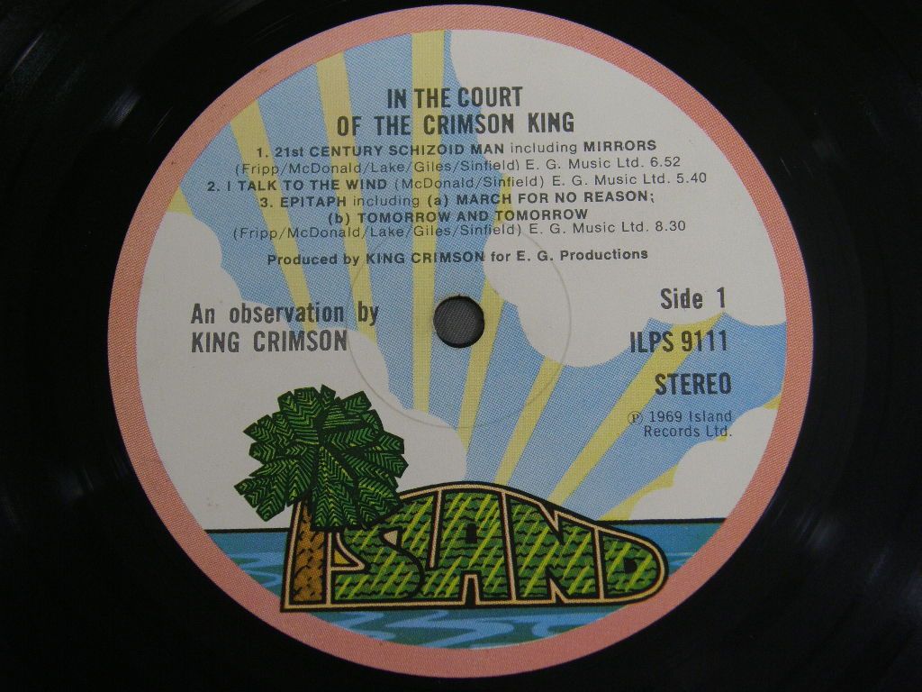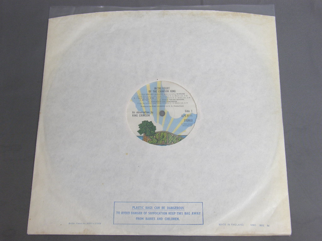 KING CRIMSON/IN THE COURT OF THE CRIMSON KING PARM TREE LBL ILPS9111 製造国:英国盤 / Media:LPMatrix:A-4U | B-4U外観:EX盤の状態:EX- 価格(税込):¥4,950(売約済) 送料 7inch:定形外郵便 360円~LP:定形外郵便 660円~送料は、注文の最終画面で確認頂けます。 > > KING CRIMSON/IN THE COURT OF THE CRIMSON KING PARM TREE LBL 外観 (EX)特記事項:角スレや背スレ、ヘリスレが少し。ジャケ表面は全体的にスレやスリキズ、よごれ等少ないしっかりした状態。見開きもあまりスレは無い感じ。外観EXの共通説明:ダメージが限定的。中古品としては保存状態がよい方。シミ、ヨゴレ、スレ 少し~軽度。 盤の状態 (EX-)特記事項:B1にコキズがチラホラあり、プチが出そうな感じですが、他のところは、薄いスレ、スリキズ多少程度の印象です。曲間など、静かなところを中心に聴いて見ましたが、チリノイズも軽め、B1はプチありますが、全体的には綺麗に再生されている感じです。盤EX-の共通説明:盤面のスリキズが多少有り。音に出そうなものは殆ど無いように見える~さほど気にならないぐらいの軽いプチ数カ所程度。 その他:B1はVG+。ジャケットは住所の表記がなくなっているのもので、73-74年ぐらいまでのもの。 Tweet それぞれの画像をクリックすると、大きい写真が見られます こちらの商品もお勧めです 8,250円 KING CRIMSON / IN THE WAKE OF POSEIDON 2nd LBL