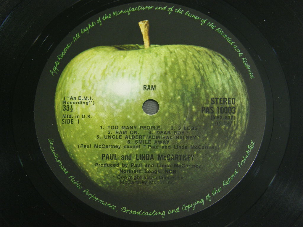PAUL McCARTNEY/RAM美品 PAS10003 製造国:英国盤 / Media:LPMatrix: -1 | -1外観:EX+盤の状態:EX+ 価格(税込):¥13,200(売約済) 送料 7inch:定形外郵便 360円~LP:定形外郵便 660円~送料は、注文の最終画面で確認頂けます。 レコード検索 > 全てのジャンル > PAUL McCARTNEY/RAM 外観 (EX+)特記事項:見開きも含めて全面が厚手のコーティング仕様。初期タイプです。表裏共にコーティングのヨレシワは少なめ、スレやスリキズも少ない印象。見開きもあまりスレは無い感じです。APPLEインナー付。外観EX+の共通説明:中古としては美品、一見してきれいでダメージが軽微。シミ、ヨゴレ、スレ有っても僅か~少し。 盤の状態 (EX+)特記事項:極薄いスリキズ、スレ少しだけ。一見してとても綺麗な状態です。曲間など、静かなところを中心に聴いて見ましたが、チリノイズ少しだけでした。盤EX+の共通説明:盤面の極薄いスリキズ、スレ少し程度 音に出そうなものは無いように見える(極軽微なソフトティック音は除く)。 Tweet それぞれの画像をクリックすると、大きい写真が見られます こちらの商品もお勧めです 5,500円 GEORGE HARRISON / THIRTY THREE & 1/3 5,500円 BEATLES / AT THE HOLLYWOOD BOWL 5,500円 JOHN LENNON / SHAVED FISH 4,950円 JOHN & YOKO - PLASTIC ONO BANDF / SOME TIME IN NEW YORK CITY 5,500円 GEORGE HARRISON / LIVING IN THE MATERIAL WORLD
