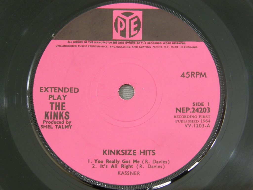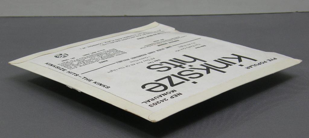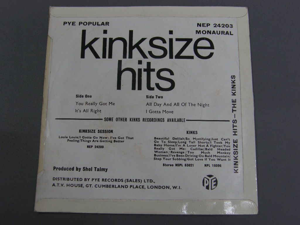 KINKS/KINKSIZE HITS EP NEP24203 製造国:英国盤 / Media:7inchMatrix:A1R | B1R外観:EX盤の状態:EX- 価格(税込):¥13,200 送料 7inch:定形外郵便 360円~LP:定形外郵便 660円~送料は、注文の最終画面で確認頂けます。 > > KINKS/KINKSIZE HITS EP 外観 (EX)特記事項:背スレが少し。レコード取り出し口上角でスレわずか。表ジャケは薄いレコードリングスレが出ていますが、全体的にはスレやスリキズ、コーティングのヨレシワのあまりないきれいな状態。右下角でゆるい折れ軽有り。裏ジャケもよごれ等は少ないです。外観EXの共通説明:ダメージが限定的。中古品としては保存状態がよい方。シミ、ヨゴレ、スレ 少し~軽度。 盤の状態 (EX-)特記事項:薄いスリキズ、表面スレ多少。A1の後半にプチ出る小キズありますが、モノ針ならあまり気にならない程度。他もモノ針なら影響ない程度のすういものの様子です。曲間など、静かなところを中心に聴いて見ましたが、チリプチ少なめで音もクリアーになっている様子でした。盤EX-の共通説明:盤面のスリキズが多少有り。音に出そうなものは殆ど無いように見える~さほど気にならないぐらいの軽いプチ数カ所程度。 Tweet それぞれの画像をクリックすると、大きい写真が見られます こちらの商品もお勧めです