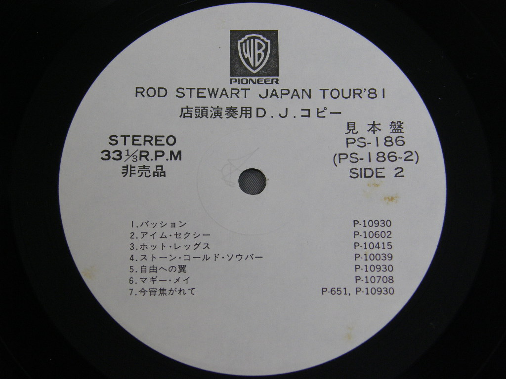 ROD STEWART/FOOLISH BEHAVIOUR JAPAN TOUR `81JAPAN TOUR `81 店頭演奏用DJ COPY PS-186 製造国:日本盤 / Media:LP外観:EX+盤の状態:EX+ 価格(税込):¥5,630(売約済) 送料 7inch:定形外郵便 360円~LP:定形外郵便 660円~送料は、注文の最終画面で確認頂けます。 > > ROD STEWART/FOOLISH BEHAVIOUR JAPAN TOUR `81 外観 (EX+)特記事項:表ジャケに薄いレコードリングスレが少々。全体的にはあまりスレやスリキズ、よごれなどの内きれいな状態。外観EX+の共通説明:中古としては美品、一見してきれいでダメージが軽微。シミ、ヨゴレ、スレ有っても僅か~少し。 盤の状態 (EX+)特記事項:極薄いスリキズ、スレ僅か。一見してとても綺麗な状態です。盤EX+の共通説明:盤面の極薄いスリキズ、スレ少し程度 音に出そうなものは無いように見える(極軽微なソフトティック音は除く)。 Tweet それぞれの画像をクリックすると、大きい写真が見られます こちらの商品もお勧めです 1,210円 ROD STEWARTロッド・スチュワート / BLONDES HAVE MORE FUNスーパースターはブロンドがお好き 1,320円 ROD STEWARTロッド・スチュワート / ATLANTIC CROSSINGアトランティック・クロッシング 1,320円 ROD STEWART / SHOT OF RHYTHM & BLUESブルース・パワー65-66 550円 ROD STEWARTロッド・スチュワート / BLONDES HAVE MORE FUNスーパースターはブロンドがお好き