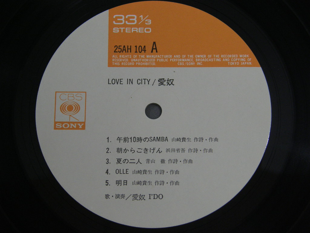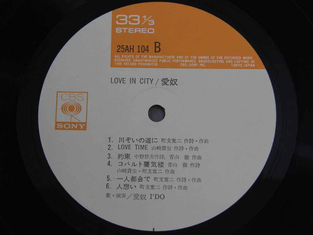 AIDO愛奴/LOVE IN CITYポスター付 25AH 104 製造国:日本盤 / Media:LP外観:EX+盤の状態:EX+帯:EX+ 価格(税込):¥3,300(売約済) 送料 7inch:定形外郵便 360円~LP:定形外郵便 660円~送料は、注文の最終画面で確認頂けます。 > > AIDO/LOVE IN CITY 外観 (EX+)特記事項:全体的にスレやスリキズ、よごれの少ないきれいな状態。歌詞カードとポスター付き。外観EX+の共通説明:中古としては美品、一見してきれいでダメージが軽微。シミ、ヨゴレ、スレ有っても僅か~少し。 盤の状態 (EX+)特記事項:極薄いスリキズ、スレ少しだけ。一見してとても綺麗な状態です。盤EX+の共通説明:盤面の極薄いスリキズ、スレ少し程度 音に出そうなものは無いように見える(極軽微なソフトティック音は除く)。 帯の状態 (EX+):あまりヨレのないしっかりした状態。 Tweet それぞれの画像をクリックすると、大きい写真が見られます こちらの商品もお勧めです 1,210円 MOTOHARU SANO佐野元春 / BACK TO THE STREET 770円 KAKIZAKI OPEN THE ROAD神埼・オン・ザ・ロード / OPEN MY ROAD 770円 IZUMI YUKIMURA雪村いづみ / I`M GETTING MY ACT TOGETHER & TAKING IT ON ROADミュージカル`旅立て女たち` 770円 RYOKO MORIYAMA森山良子 / RYOKO MORIYAMA COLLEGE FOLK ALBUM森山良子カレッジ・フォーク・アルバム 550円 SOUTHERN ALL STARS.サザンオールスターズ / KAMAKURA 660円 TAKAKO SHIRAI白井貴子 / PASCAL 770円 YASUHIRO ABE安部恭弘 / HOLD ME TIGHTホールド・ミー・タイト 1,320円 FUKINOTOふきのとう / SAIJIKI歳時記