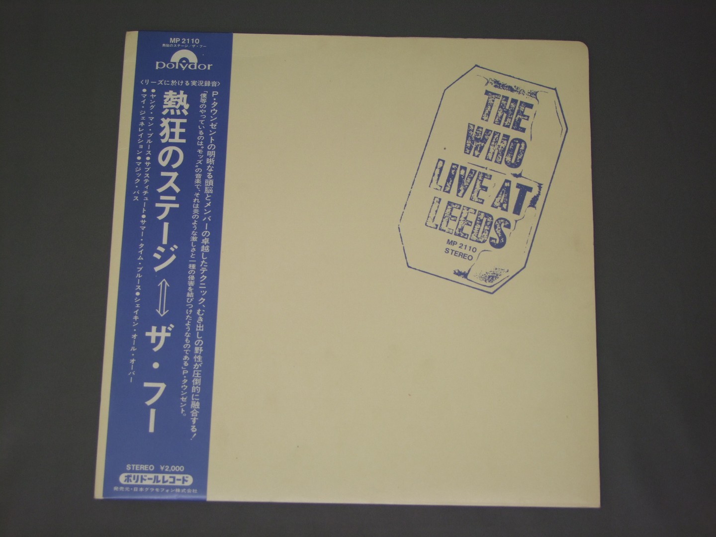 WHO/LIVE AT LEEDS熱狂のステージ MP2110 製造国:日本盤 / Media:LP外観:EX+盤の状態:EX+帯:EX+ 価格(税込):¥4,191(売約済) 送料 7inch:定形外郵便 360円~LP:定形外郵便 660円~送料は、注文の最終画面で確認頂けます。 > > WHO/LIVE AT LEEDS 外観 (EX+)特記事項:ジャケ表面は薄いよごれがわずかに有る感じですが、全体的スレやスリキズ、よごれのあまりないきれいな状態。ヨレ感も無くしっかりした状態です。オリジナルインナーもあまりヨレは無い感じ。おまけは全部で6点。英国盤は12点ですが、日本盤は細かいものが幾つか一緒になってしまっています。だいたい全部あるようですが、ポスターの付属は無いようです。外観EX+の共通説明:中古としては美品、一見してきれいでダメージが軽微。シミ、ヨゴレ、スレ有っても僅か~少し。 盤の状態 (EX+)特記事項:薄いスリキズ、スレ少し。一見してきれいな状態です。盤EX+の共通説明:盤面の極薄いスリキズ、スレ少し程度 音に出そうなものは無いように見える(極軽微なソフトティック音は除く)。 帯の状態 (EX+):あまりヨレやよごれの無いしっかりした状態。 Tweet それぞれの画像をクリックすると、大きい写真が見られます こちらの商品もお勧めです 1,650円 ROGER DALTREYロジャー・ダルトリー / UNDER A RAGING MOON月の影 2,200円 WHOフー / IT`S HARDイッツ・ハード