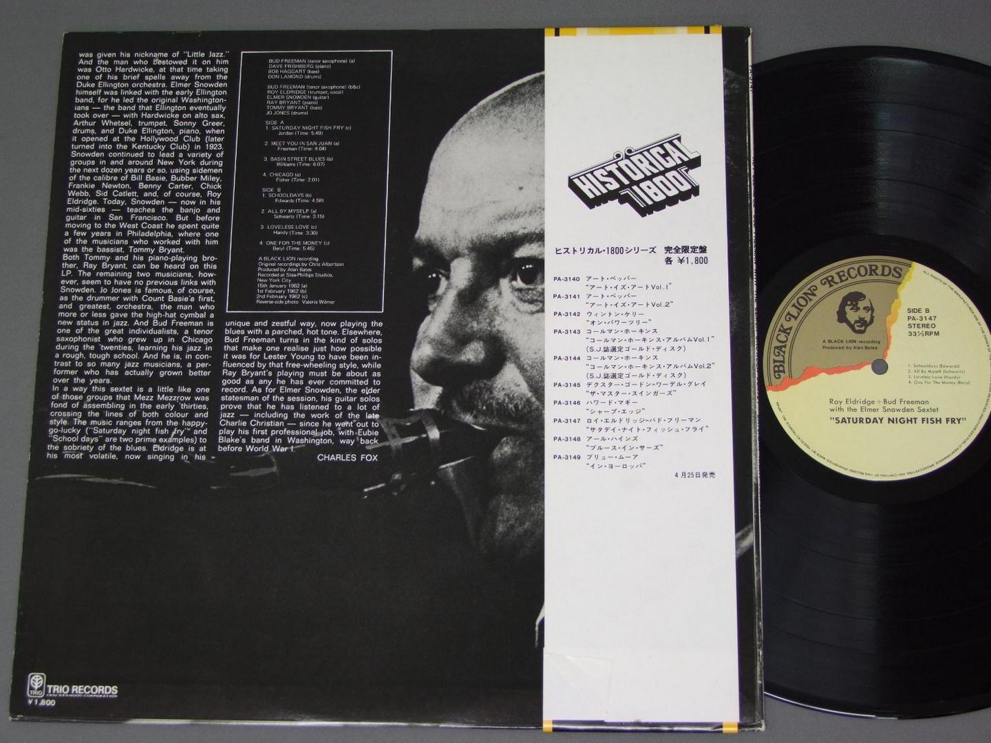 ROY ELDRIDGE AND BUD FREEMAN WITH THE ELMER SNOWDEN SEXTET/SATURDAY NIGHT FISH FRY PA-3174 製造国:日本盤 / Media:LP外観:EX盤の状態:EX+帯:EX 価格(税込):¥838(売約済) 送料 7inch:定形外郵便 360円~LP:定形外郵便 660円~送料は、注文の最終画面で確認頂けます。 > > ROY ELDRIDGE AND BUD FREEMAN WITH THE ELMER SNOWDEN SEXTET/SATURDAY NIGHT FISH FRY 外観 (EX)特記事項:全体的にスレやスリキズ、よごれ等の少ないきれいな状態。裏ジャケの上ヘリにテープ小有り。解説カード付。外観EXの共通説明:ダメージが限定的。中古品としては保存状態がよい方。シミ、ヨゴレ、スレ 少し~軽度。 盤の状態 (EX+)特記事項:極薄いスリキズ・スレ少しだけ。一見してきれいな状態です。盤EX+の共通説明:盤面の極薄いスリキズ、スレ少し程度 音に出そうなものは無いように見える(極軽微なソフトティック音は除く)。 帯の状態 (EX):上ヘリで切れ小。表側下の方にヨレが少し。全体的にはヨレの少ないしっかりした状態。 Tweet それぞれの画像をクリックすると、大きい写真が見られます こちらの商品もお勧めです 880円 V-DISC ALL-STAR JAM SESSIONSVディスク・オールスター・ジャムセッション / V-DISC ALL-STAR JAM SESSIONSVディスク・オールスター・ジャムセッション VOL.5 1,320円 DON ELLIS ORCHESTRAドン・エリス楽団 / STUDY IN GREAT BIG BAND 20-LIVE AT MONTEREY !ライヴ・アット・モンタレー 1,650円 KEITH JARRETTキース・ジャレット / FACING YOUフェイシング・ユー 1,320円 GERY PEACOCKゲーリー・ピーコック / TALES OF ANOTHERTALES OF ANOTHER 770円 JACQUES LOUSSIER TRIO - ROYAL PHIL. ORCH.ジャック・ルーシェ・トリオ - ロイヤル・フィルハーモニー管弦楽団 / BACH - BRANDENBURG NO5バッハ - ブランデンブルグ協奏曲第5番 1,210円 BUCK CLAYTONバック・クレイトン / PASSORT TO PARADISEスポート・トゥ・パラダイス 1,320円 JOHN HALLジョン・ホール / JOHN HALLジョン・ホールの世界 1,650円 MASARU IMADA今田勝 / CARNIVAL哀愁のカーニヴァル