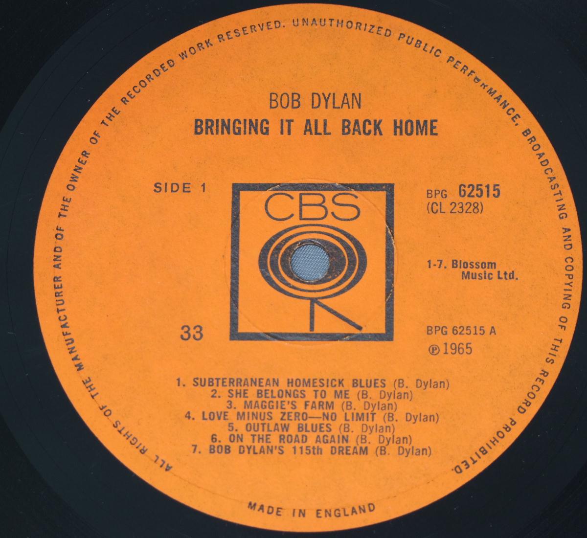 BOB DYLAN/BRINGING IT ALL BACK HOME MONO BPG62515 製造国:英国盤 / Media:LPMatrix:1A-1 | 1B-1外観:EX-盤の状態:EX- 価格(税込):¥7,150(売約済) 送料 7inch:定形外郵便 360円~LP:定形外郵便 660円~送料は、注文の最終画面で確認頂けます。 > > BOB DYLAN/BRINGING IT ALL BACK HOME MONO 外観 (EX-)特記事項:角スレ多少有り。背スレも多少有りです。表ジャケは背に沿ってスレキズ。ジャケ表面は薄いスレは多少ありますが、コーティングのヨレシワ等は少ない感じ。薄いシミ風のよごれ軽多少有り。裏ジャケは周辺部でよごれ或いは日焼け軽有りますが、全体的に薄いものが中心。外観EX-の共通説明:ダメージ軽度~多少。 中古品としては普通の状態。シミ、ヨゴレ、スレなど軽く~多少。 盤の状態 (EX-)特記事項:スリキズは少なめ。薄いスリキズ・スレ軽くある感じ。軽プチ出そうな薄目の小キズ、線キズ少しで、ほとんどが軽微なものの様子です。A1、B1辺り少しスレた感じありますが、モノ針なら軽チリプチと、数回のスーという薄いノイズ、軽度であまり気にならない感じでした。他も曲間など、静かなところを中心に聴いて見ましたが、チリプチ少なめで音もとってもクリアーに鳴っていました。オススメの音質です。盤EX-の共通説明:盤面のスリキズが多少有り。音に出そうなものは殆ど無いように見える~さほど気にならないぐらいの軽いプチ数カ所程度。 Tweet それぞれの画像をクリックすると、大きい写真が見られます こちらの商品もお勧めです 6,050円 BOB DYLAN / PLANET WAVES 6,600円 BOB DYLAN / NEW MORNING 7,150円 BOB DYLAN / SELF PORTRAIT 3,850円 BOB DYLAN / PAT GARRETT & BILLY THE KID