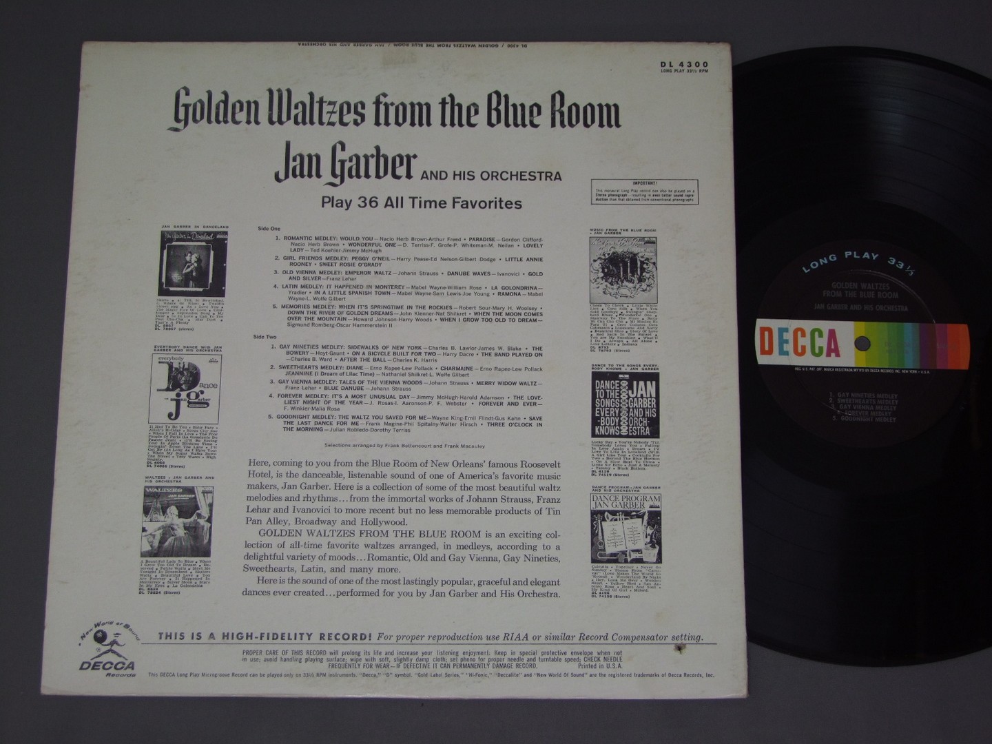 JAN GARBER AND HIS ORCHESTRA/GOLDEN WALTZES FROM THE BLUE ROOM DL4300 製造国:米国盤 / Media:LP外観:EX-盤の状態:EX+ 価格(税込):¥1,572(売約済) 送料 7inch:定形外郵便 360円~LP:定形外郵便 660円~送料は、注文の最終画面で確認頂けます。 > > JAN GARBER AND HIS ORCHESTRA/GOLDEN WALTZES FROM THE BLUE ROOM 外観 (EX-)特記事項:角スレ有り。背、上下ヘリにスレとよごれが少し。上ヘリは割れの補修有り、下ヘリは抜けの補修有り。表ジャケは左下にドリル穴のカットアウト有り。スレよごれ軽は少し有りますが、全体的に薄い感じです。裏ジャケはよごれ軽が有りますが、全体的に薄い感じ。外観EX-の共通説明:ダメージ軽度~多少。 中古品としては普通の状態。シミ、ヨゴレ、スレなど軽く~多少。 盤の状態 (EX+)特記事項:薄いスリキズ・スレ少し程度。一見してきれいな状態です。少し聴いてみましたがチリノイズ少ないきれいな再生具合でした。盤EX+の共通説明:盤面の極薄いスリキズ、スレ少し程度 音に出そうなものは無いように見える(極軽微なソフトティック音は除く)。 Tweet それぞれの画像をクリックすると、大きい写真が見られます こちらの商品もお勧めです 1,650円 WES MONTGOMERYウェス・モンゴメリー / CALIFORNIA DREAMING夢のカリフォルニア 1,650円 EDDY DUCHIN / GREAT EDDY DUCHIN 770円 JIM GALLOWAY`S WEE BIG BAND / KEEP THE RHYTHM GOING 770円 PAUL QUINICHETTTE / MOODS FEATURING PAUL QUINICHETTTE 1955 550円 DIZZY GILLESPIE / DIZZY GILLESPIE 1,100円 BENNY CARTER / BENNY CARTER 1943-46 660円 PEE WEE RUSSELL etc / HALO HI-FI DIXIELAND 660円 SAMMY KAYE / BEST OF SAMMY KAYE
