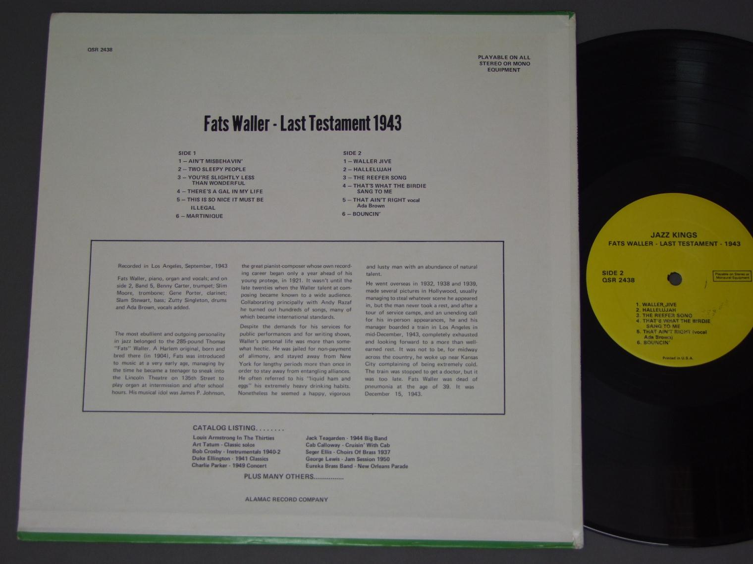 FATS WALLER /LAST TESTAMENT 1943 OSR2438 製造国:米国盤 / Media:LP外観:EX盤の状態:EX 価格(税込):¥1,257(売約済) 送料 7inch:定形外郵便 360円~LP:定形外郵便 660円~送料は、注文の最終画面で確認頂けます。 レコード検索 > CLASSIC CHAMBER > FATS WALLER /LAST TESTAMENT 1943 外観 (EX)特記事項:ジャケ表面は全体的にスレやスリキズ、よごれ等は薄い感じ。外観EXの共通説明:ダメージが限定的。中古品としては保存状態がよい方。シミ、ヨゴレ、スレ 少し~軽度。 盤の状態 (EX)特記事項:薄いスリキズ・スレ少し。一見してきれいな印象です。盤EXの共通説明:盤面のスリキズが薄いものが少し~軽度 音に出そうなものは無いように見える(軽微なソフトティック音は除く)。 Tweet それぞれの画像をクリックすると、大きい写真が見られます こちらの商品もお勧めです 1,650円 SCOTT HAMILTON-BUDDY TATE / SCOTT`S BUDDY 440円 WARREN COVINGTON ORCHESTRA / WARREN COVINGTON ORCHESTRA PLAYS HITS OF THE 60`S VOL.1 1,100円 LOU STEIN / LOU STEIN SOLO 1,980円 MABEL MERCER & BOBBY SHORT / AT TOWN HALL 990円 JIMMY McPARTLAND - VIC DICKENSON - BUDDY TATE etc / SWINGIN` 880円 EVERGREEN CLASSIC JAZZ BAND / BE PREPARED FOR THE UNEXPECTED 550円 LIONEL HAMPTON / STEPIN` OUT 1,100円 ART HODES BLUES SIX / BLUES GROOVE