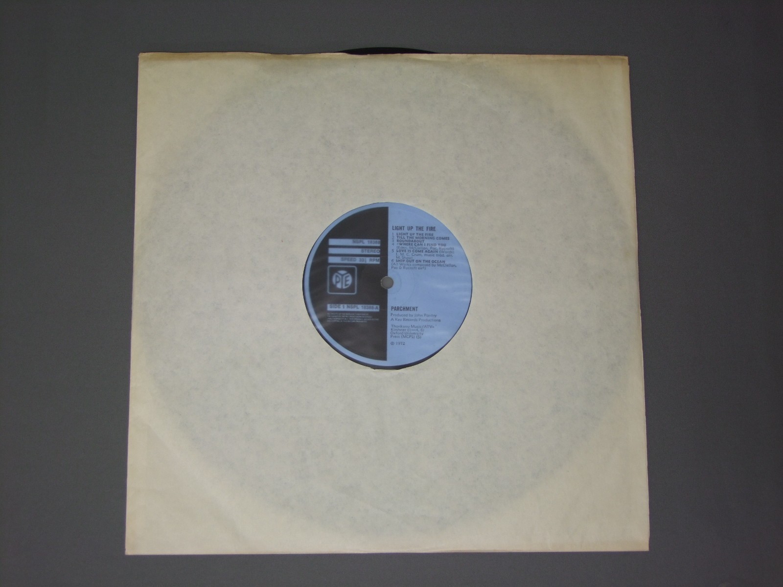PARCHMENT/LIGHT UP THE FIRE NSPL18388 製造国:英国盤 / Media:LPMatrix:A1 | B1 手書き風外観:VG+盤の状態:EX- 価格(税込):¥1,650(売約済) 送料 7inch:定形外郵便 360円~LP:定形外郵便 660円~送料は、注文の最終画面で確認頂けます。 > > PARCHMENT/LIGHT UP THE FIRE 外観 (VG+)特記事項:背上下でスレ。背は薄いシミ軽も多少あります。ジャケ表面は表裏ジャケ共に薄いシミ状のよごれ軽多め。スレよごれも多少有りです。表ジャケの右上隅にステッカー跡小有り。外観VG+の共通説明:ダメージやや有り。シミ、ヨゴレ、スレなど多少~やや多め。 盤の状態 (EX-)特記事項:薄いスリキズや細かいスレなど多少。A2の最初のほう、A6の真ん中で少しプチ出る小キズ有りますが、全体的には殆どが軽微な感じです。曲間など、静かなところを中心に聴いて見ましたが、チリノイズも少なめで、音自体もとってもクリアーに鳴っています。オリジナルらしさは十分に感じられる、オススメの音質。盤EX-の共通説明:盤面のスリキズが多少有り。音に出そうなものは殆ど無いように見える~さほど気にならないぐらいの軽いプチ数カ所程度。 Tweet それぞれの画像をクリックすると、大きい写真が見られます こちらの商品もお勧めです 550円 RICK WAKEMAN / JOURNEY TO THE CENTRE OF THE EARTH 990円 JETHRO TULL / `M U` BEST OF JETHRO TULL 2,200円 ROXY MUSIC / BETTER THAN FOOD ( BBC BROADCAST 1972 & LIVE 1974 ) 880円 ALLAN HOLDSWORTHアラン・ホールズワース / ROAD GAMES 440円 TIME MACHINE / PROJECT:TIME SCANNING PIC DISC 2,420円 ASIA / ONLY TIME WILL TELL ( LIVE IN PHILADELHIA USA 1982 ) UNOFFICIAL RELEASE 990円 EMERSON LAKE & PALMER / BRAIN SALAD SURGERY 4,400円 MOVE / CALIFORNIA MAN