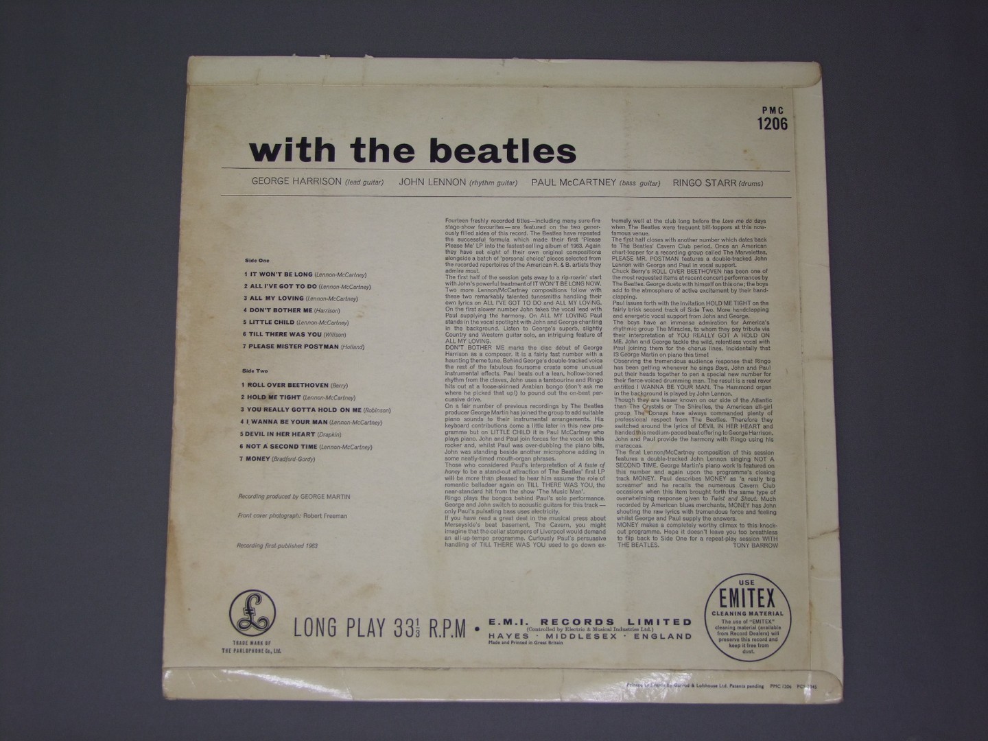 BEATLES/WITH THE BEATLES MONO JOBETE PMC1206 製造国:英国盤 / Media:LPMatrix:1N | 1N外観:VG+盤の状態:VG- 価格(税込):¥3,300(売約済) 送料 7inch:定形外郵便 360円~LP:定形外郵便 660円~送料は、注文の最終画面で確認頂けます。 > > BEATLES/WITH THE BEATLES MONO JOBETE 外観 (VG+)特記事項:角スレ多少有り。上ヘリに小さなスリキズ少し。表ジャケはレコード取り出し口下辺りにシミ。レコード取り出し口縁はヨレも多少有り。背付近にヨレシワの剥がれ有り。コーティングシワは全体的には少なめと思います。薄いレコードリングスレや細いスリキズ多少有り。裏ジャケはB面3曲目の曲のクレジットがYOU REALLY GOTTAになっている初期タイプ。レコード取り出し口によごれ有り。スレよごれや経年風の薄いよごれ軽多少有りです。外観VG+の共通説明:ダメージやや有り。シミ、ヨゴレ、スレなど多少~やや多め。 盤の状態 (VG-)特記事項:スリキズ、スレは多少。溝スレっぽさやや多く、少し白っぽい印象です。少し聴いてみましたが、モノ針でも溝スレっぽいチリ、サーという感じ多少有ります。盤VG-の共通説明:盤面にスリキズが多め、音に出そうなものもやや有る、針飛びの可能性有り。 その他:B面ラストのMONEYのクレジットがJOBETEになっている初回レーベル Tweet それぞれの画像をクリックすると、大きい写真が見られます こちらの商品もお勧めです 5,500円 GEORGE HARRISON / LIVING IN THE MATERIAL WORLD 5,500円 JOHN LENNON / SHAVED FISH 5,500円 GEORGE HARRISON / THIRTY THREE & 1/3 4,950円 JOHN & YOKO - PLASTIC ONO BANDF / SOME TIME IN NEW YORK CITY 5,500円 BEATLES / AT THE HOLLYWOOD BOWL
